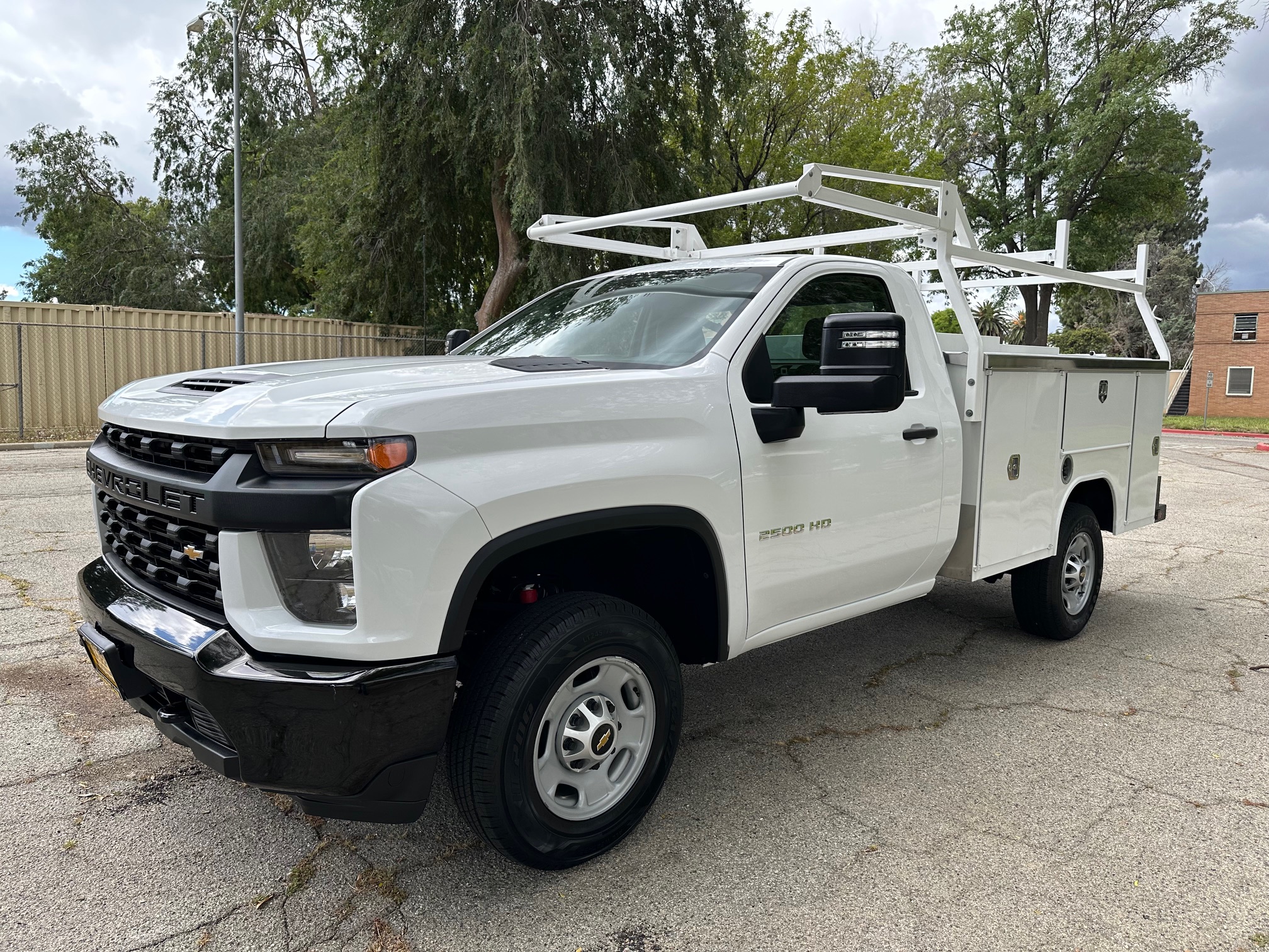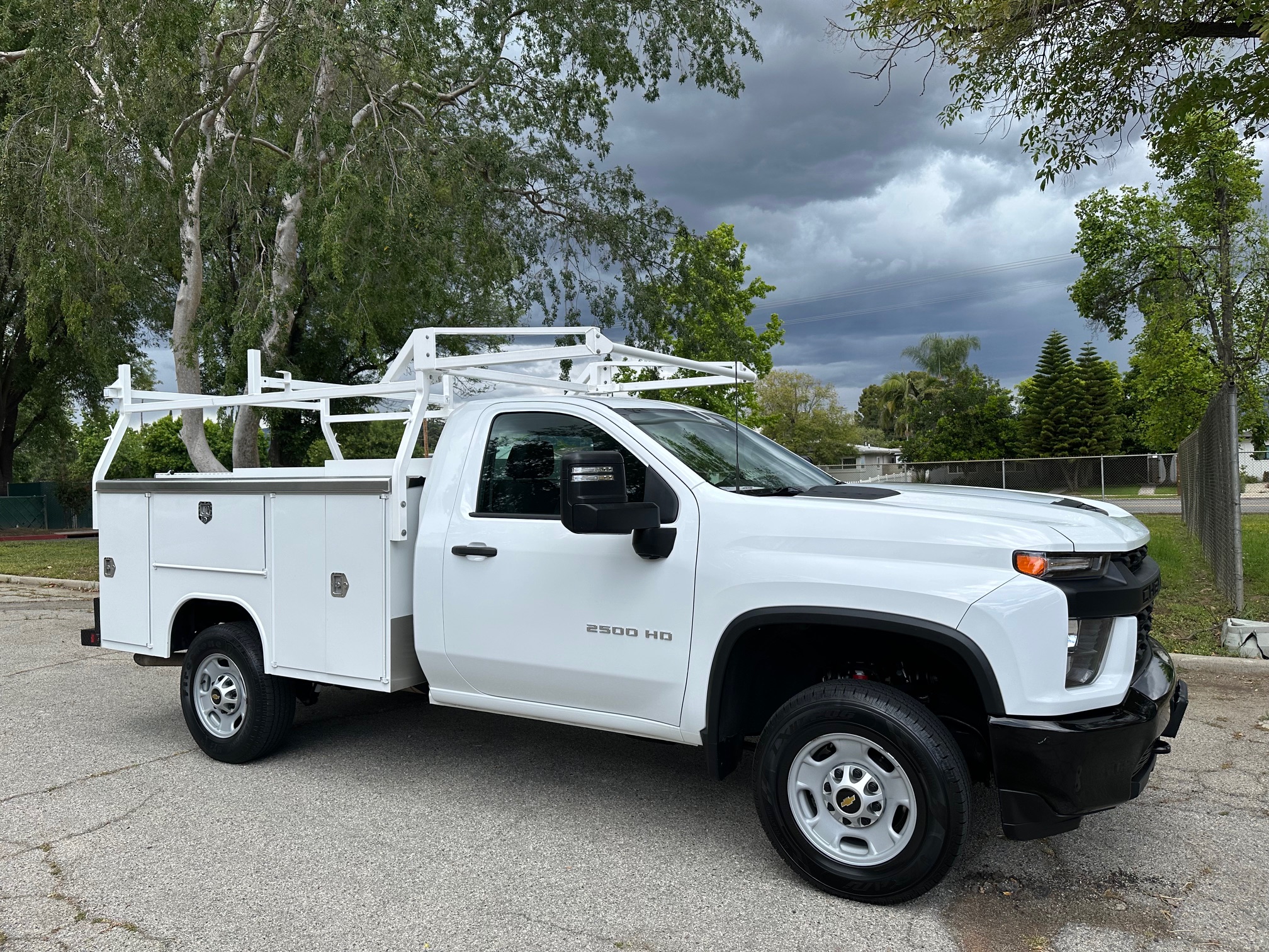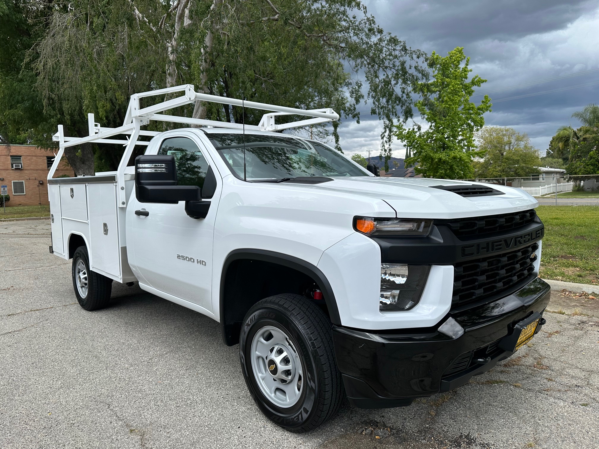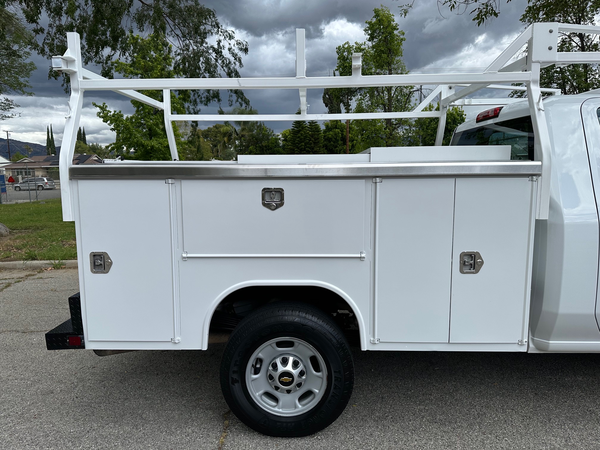 2022 Chevy Silverado 2500 H.D. Service Body/ Utility Truck, 6.6L V-8, auto trans, A/C, tilt, cruise, 53k miles, power windows and locks, power mirrors, trailer brakes, backup camera, bluetooth radio, alarm, 9900 g.v.w., Harbor enclosed service body, top loader trays, lumber rack, slide lock security bars, new front tires, 80% rear tire tread, just serviced, runs and drives great. Nationwide shipping and financing are available. Checkout all our inventory at TruckDepotLA.com.
