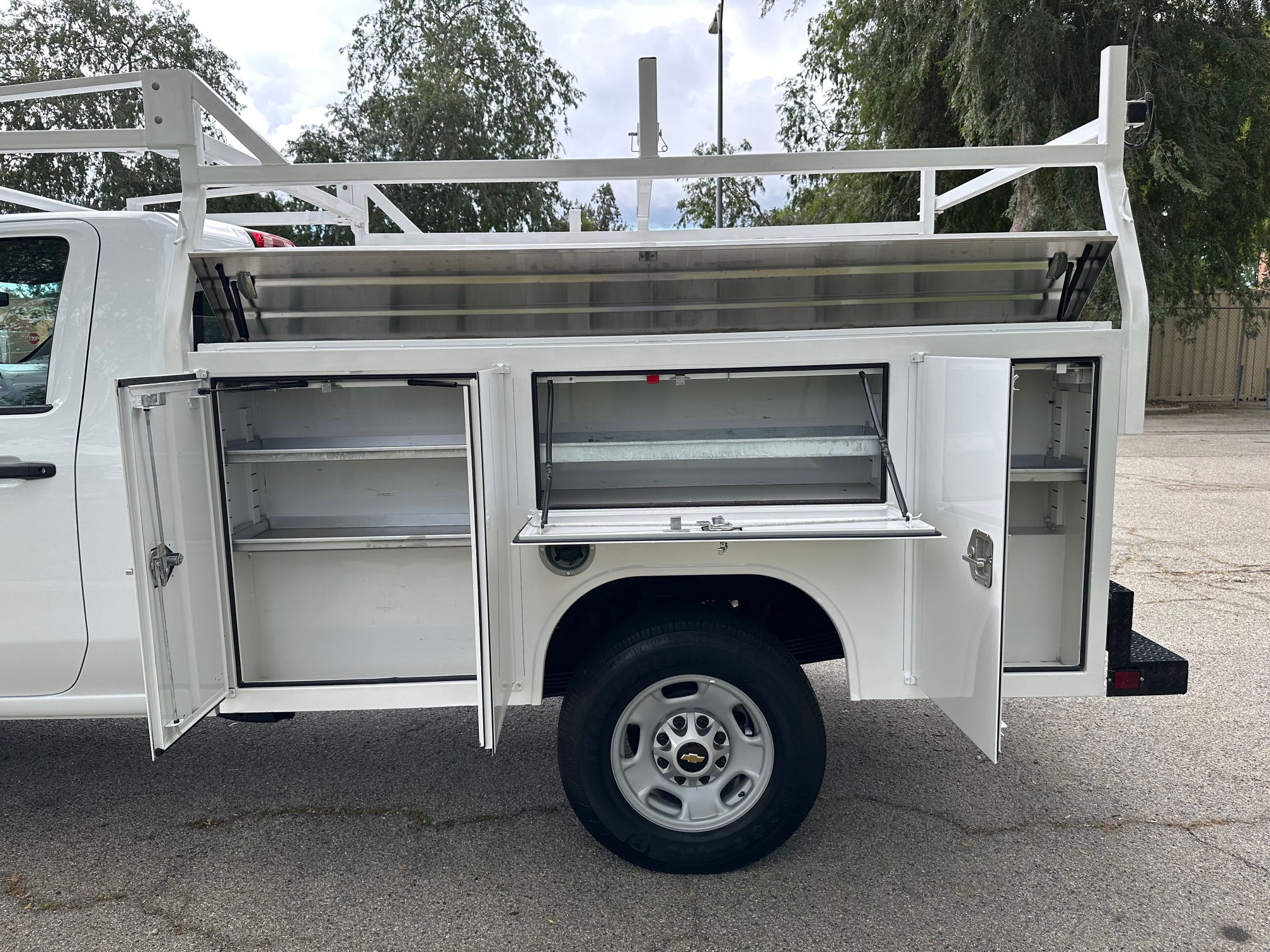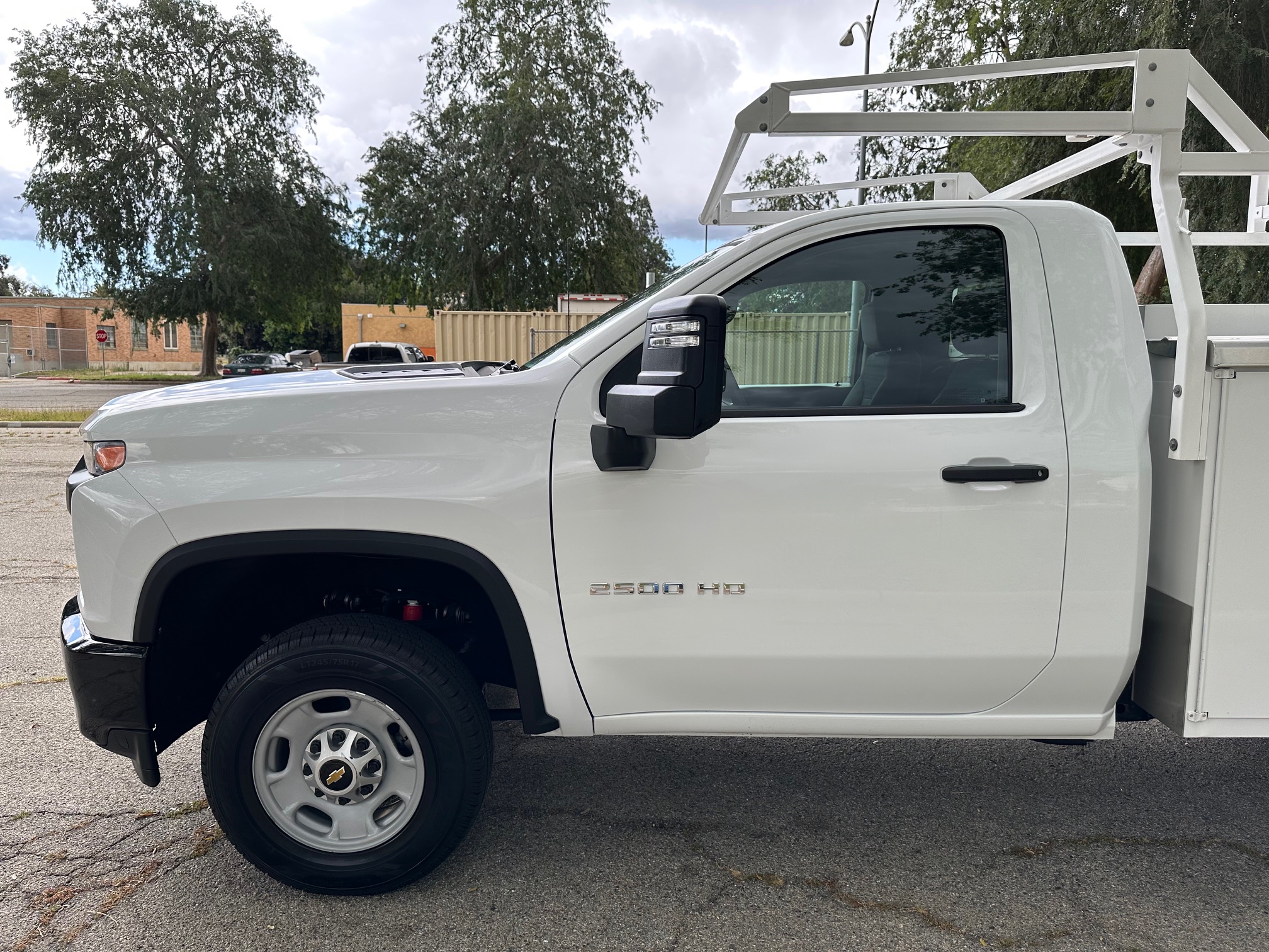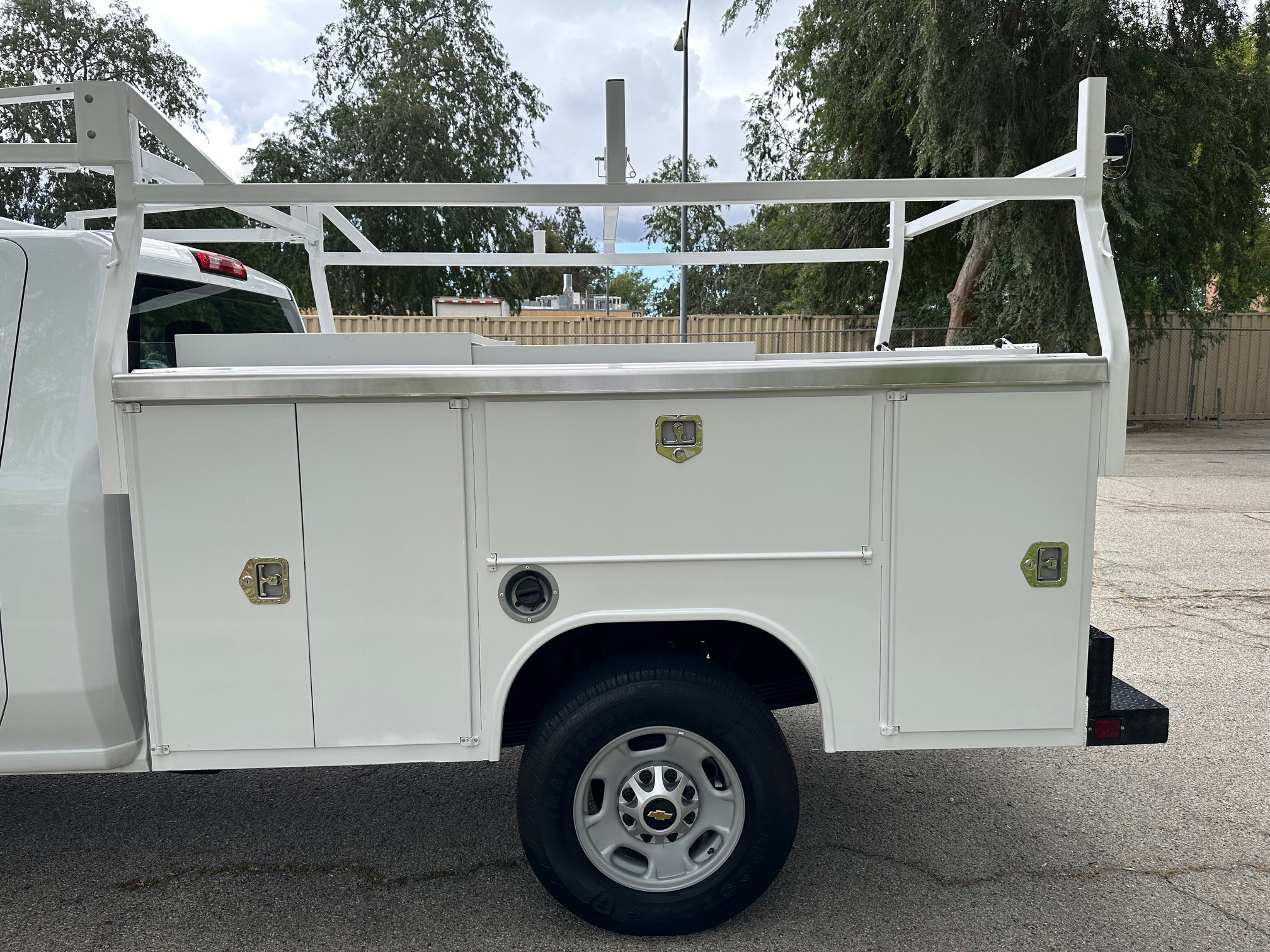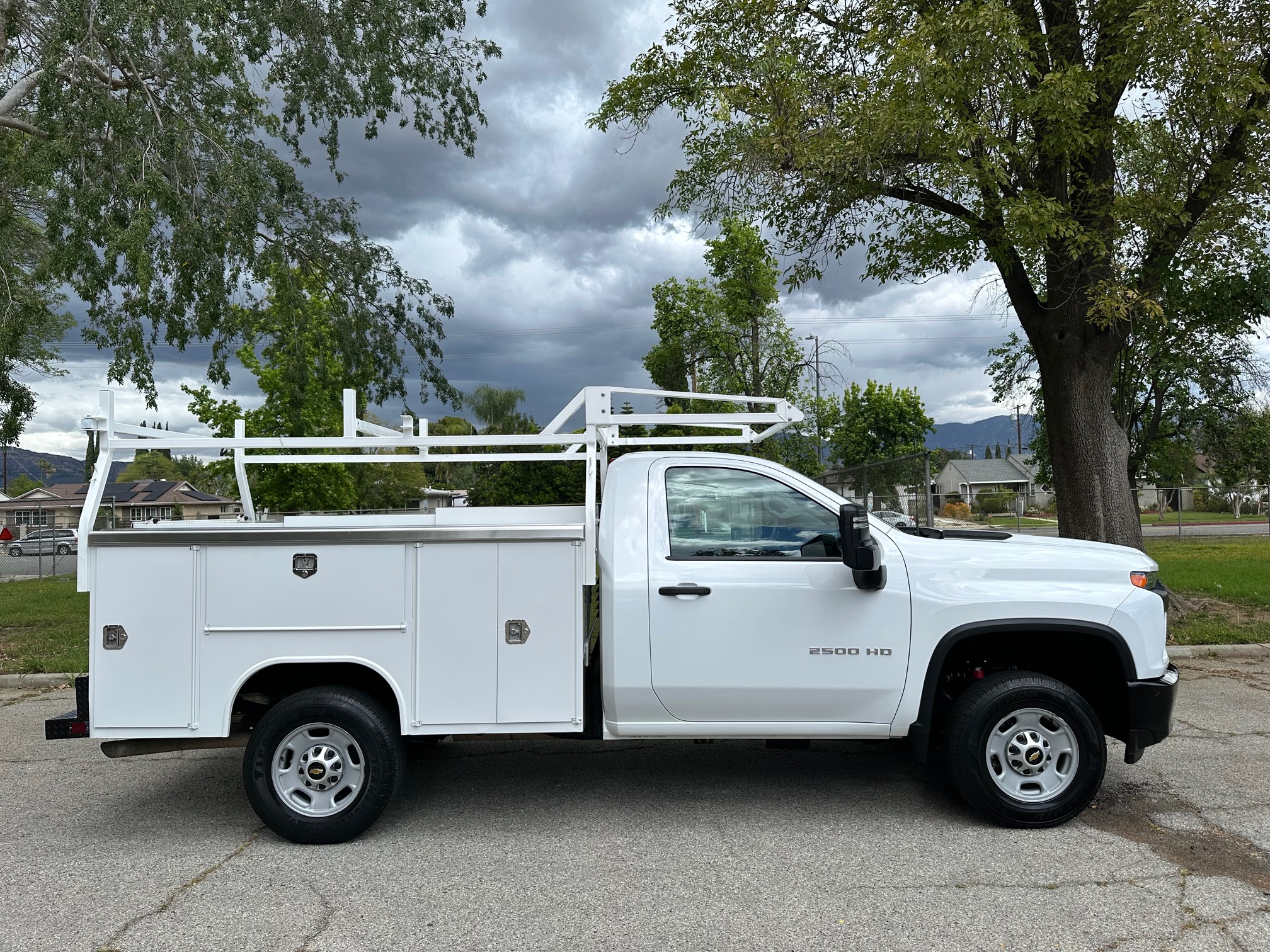 2022 Chevy Silverado 2500 H.D. Service Body/ Utility Truck, 6.6L V-8, auto trans, A/C, tilt, cruise, 53k miles, power windows and locks, power mirrors, trailer brakes, backup camera, bluetooth radio, alarm, 9900 g.v.w., Harbor enclosed service body, top loader trays, lumber rack, slide lock security bars, new front tires, 80% rear tire tread, just serviced, runs and drives great. Nationwide shipping and financing are available. Checkout all our inventory at TruckDepotLA.com.