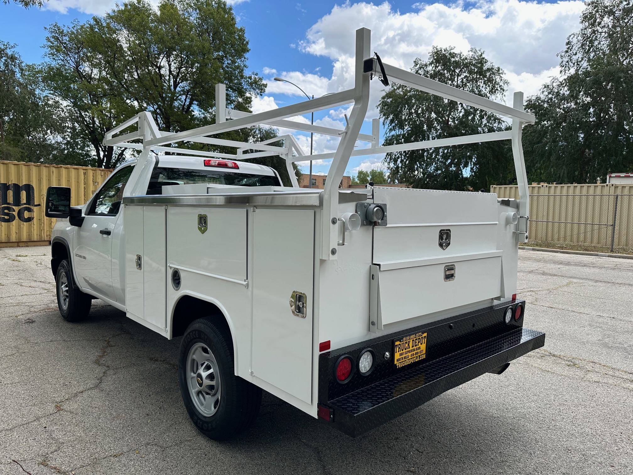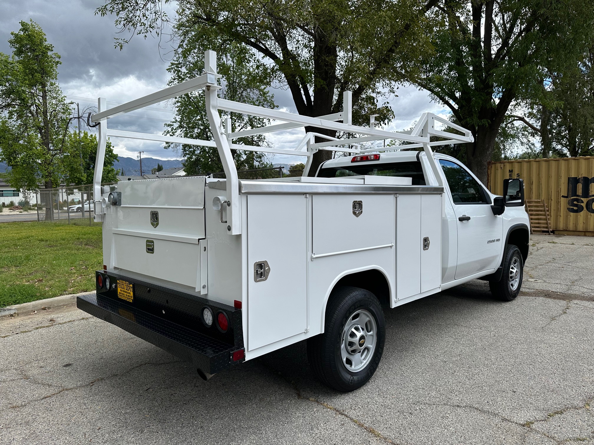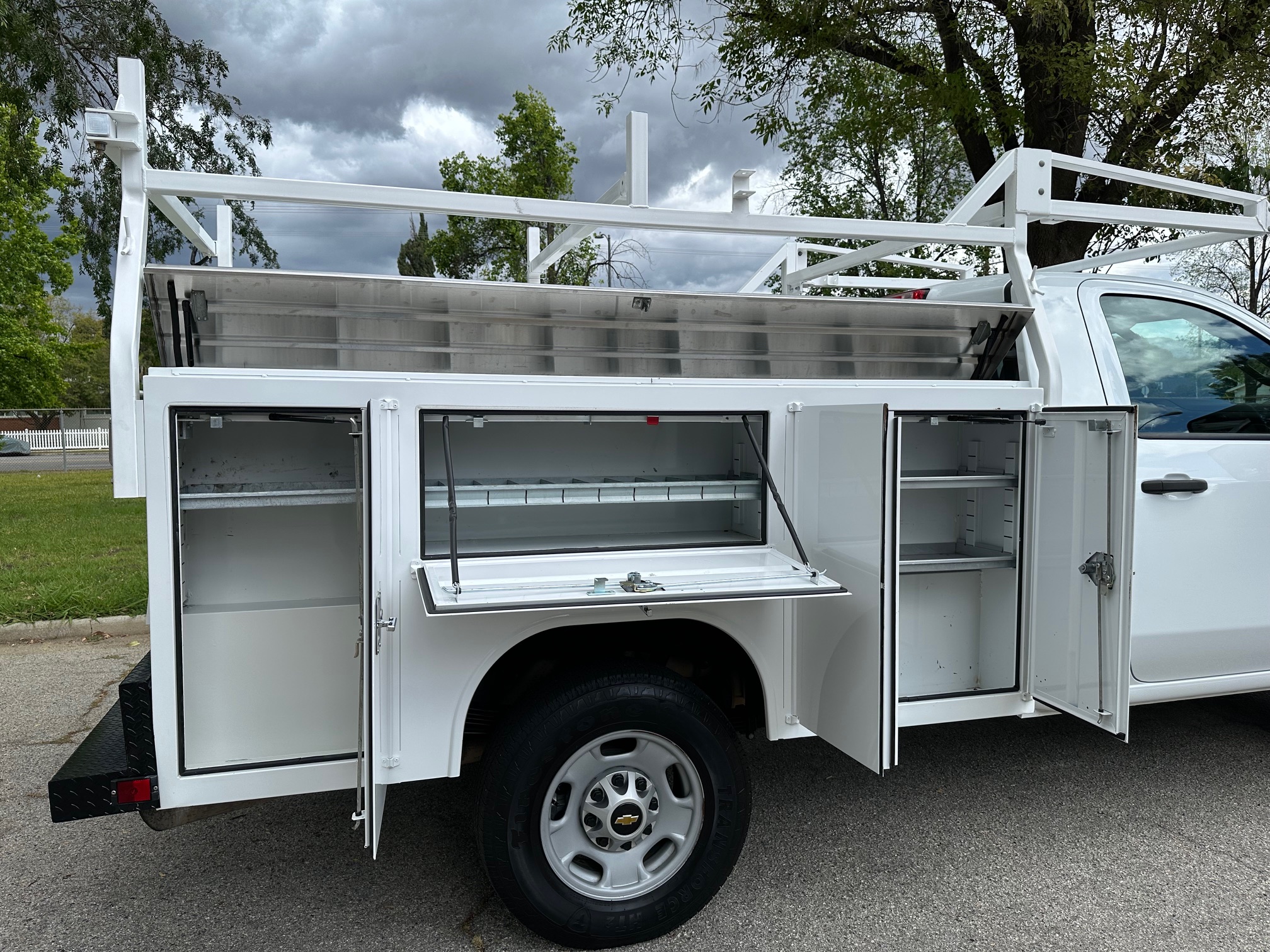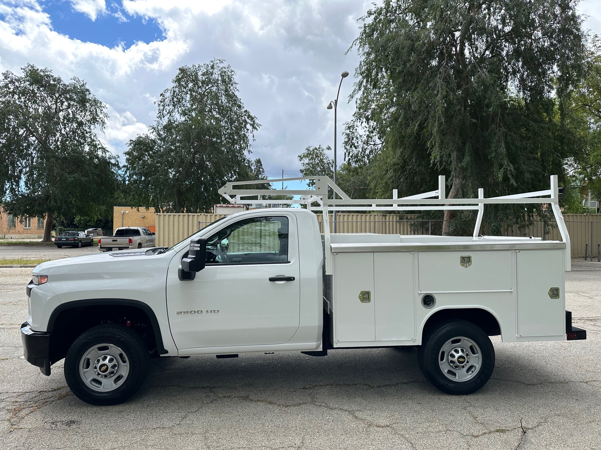 2022 Chevy Silverado 2500 H.D. Service Body/ Utility Truck, 6.6L V-8, auto trans, A/C, tilt, cruise, 53k miles, power windows and locks, power mirrors, trailer brakes, backup camera, bluetooth radio, alarm, 9900 g.v.w., Harbor enclosed service body, top loader trays, lumber rack, slide lock security bars, new front tires, 80% rear tire tread, just serviced, runs and drives great. Nationwide shipping and financing are available. Checkout all our inventory at TruckDepotLA.com.