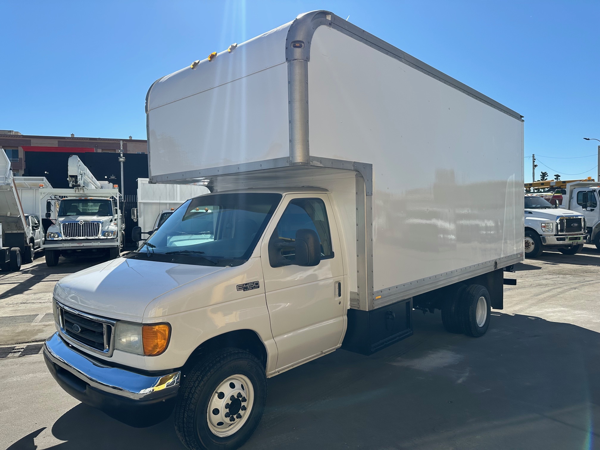 2004 Ford F-450 Box Truck with Liftgate, 6.8L V-10, auto trans, A/C, tilt, cruise, power windows and locs, power mirrors, 144K, 176" wheel base, 14k g.v.w., 19' Marathon body including dog house, 16' main body, side door entry, MBB 2200 lbs. capacity lift gate, tool bing 80%-90% tire tread, just serviced. Nationwide shipping and financing are available. Checkout all our inventory at TruckDepotLA.com.