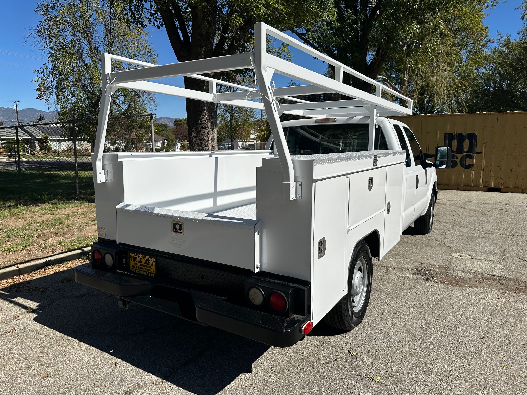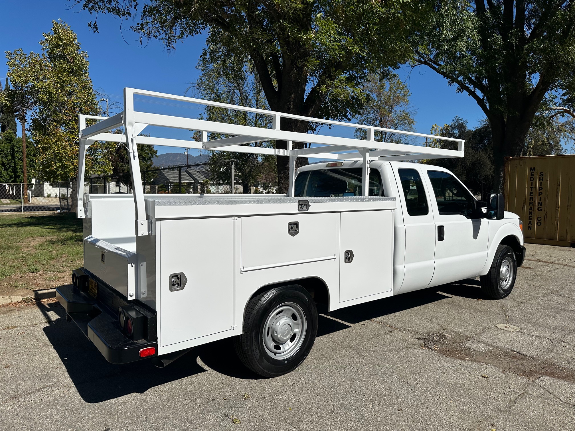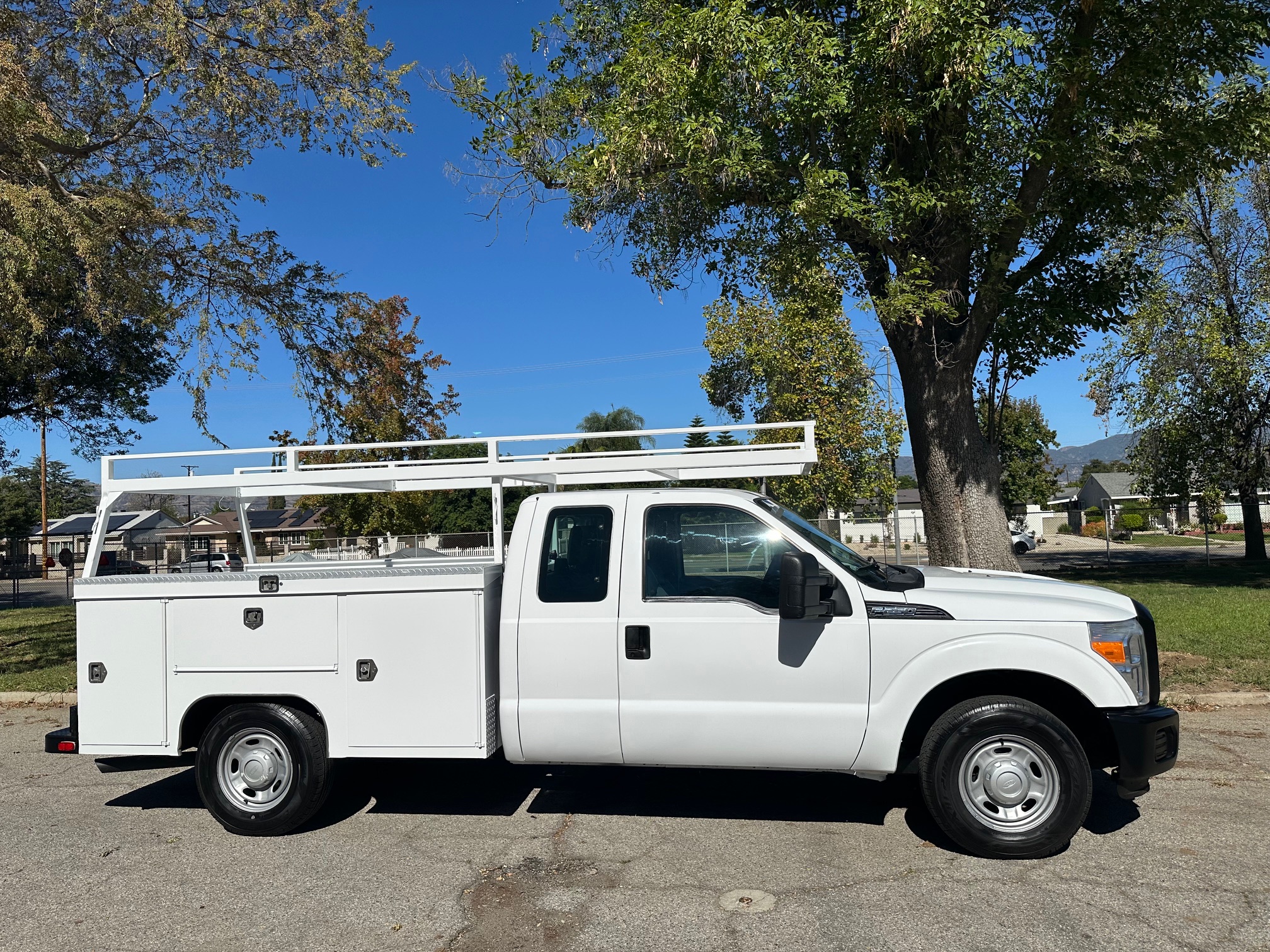 2011 Ford F-250 Extra Cab Service Body/ Utility Truck, 6.2L V-8, auto trans, a/c, tilt, 148k miles, trailer brakes, Scelzi service body, diamond plated top trays, ladder rack, new tires, just serviced, fleet maintained since new. Nationwide shipping and financing are available. Checkout all our inventory at TruckDepotLA.com.
