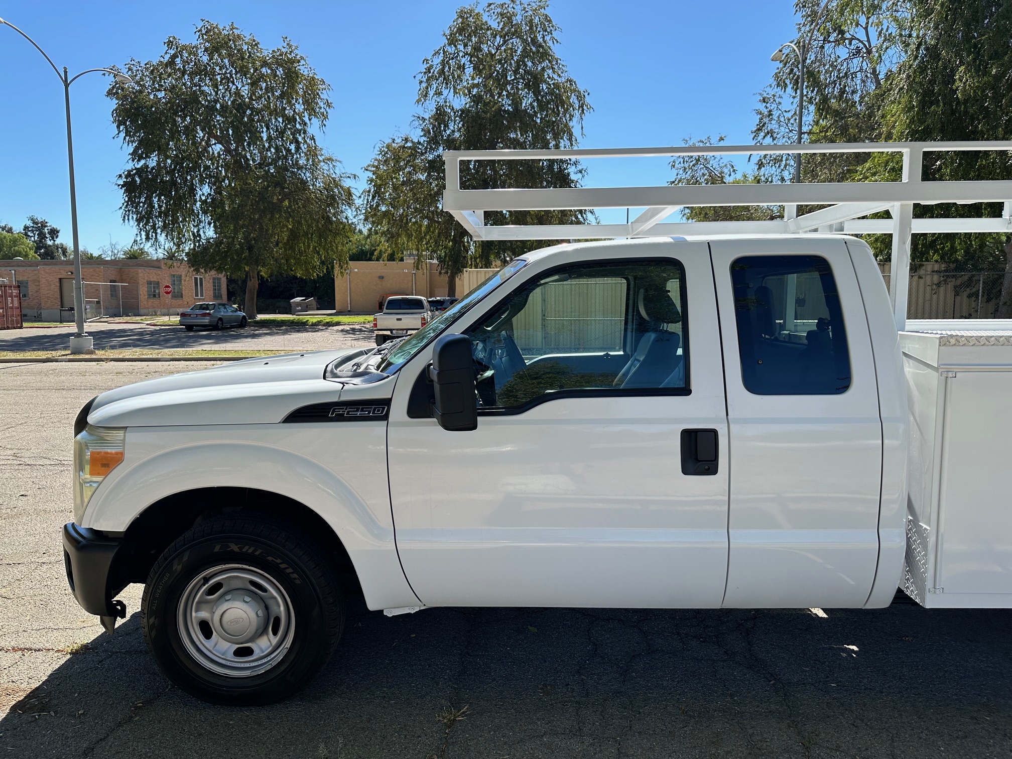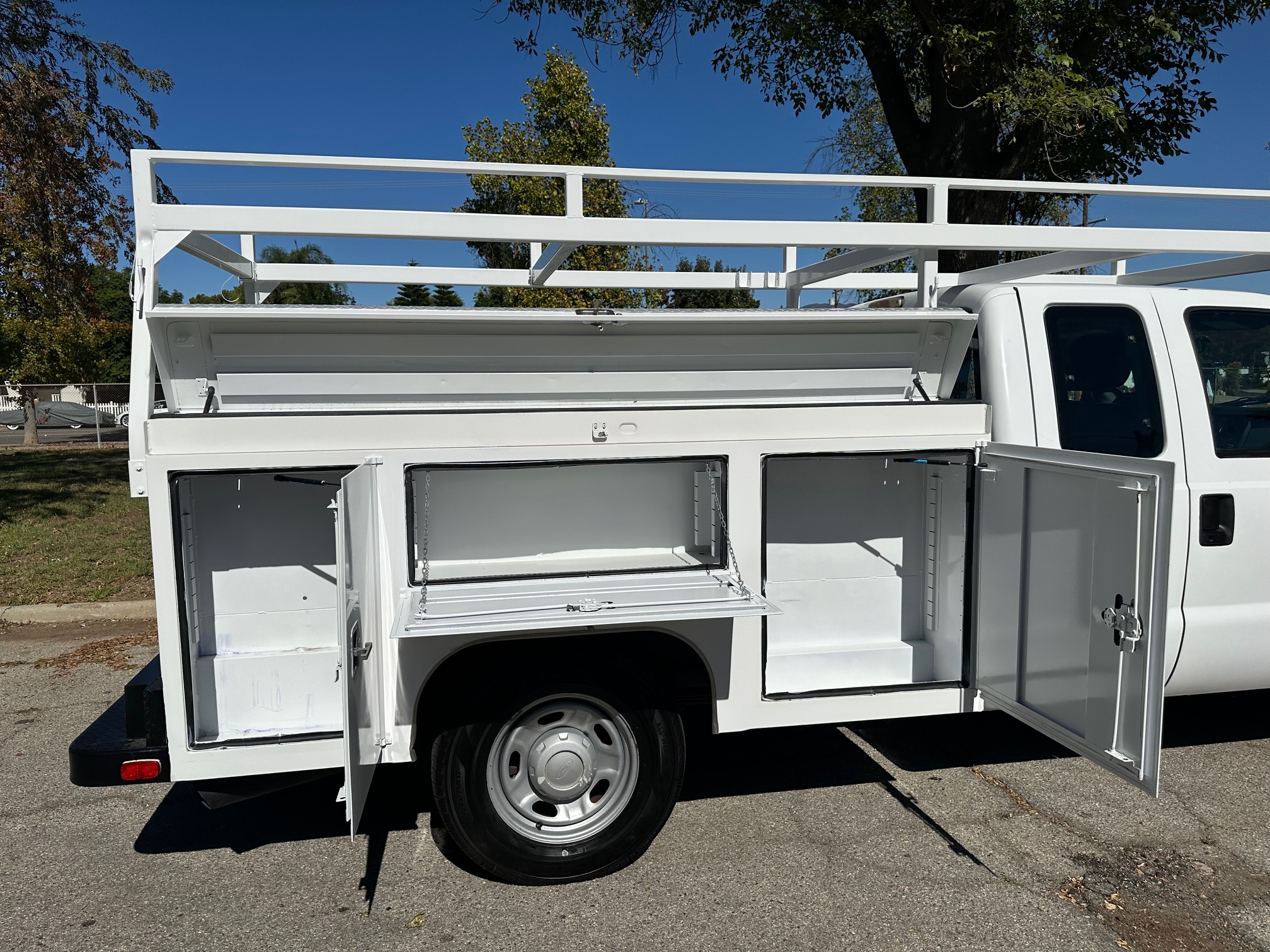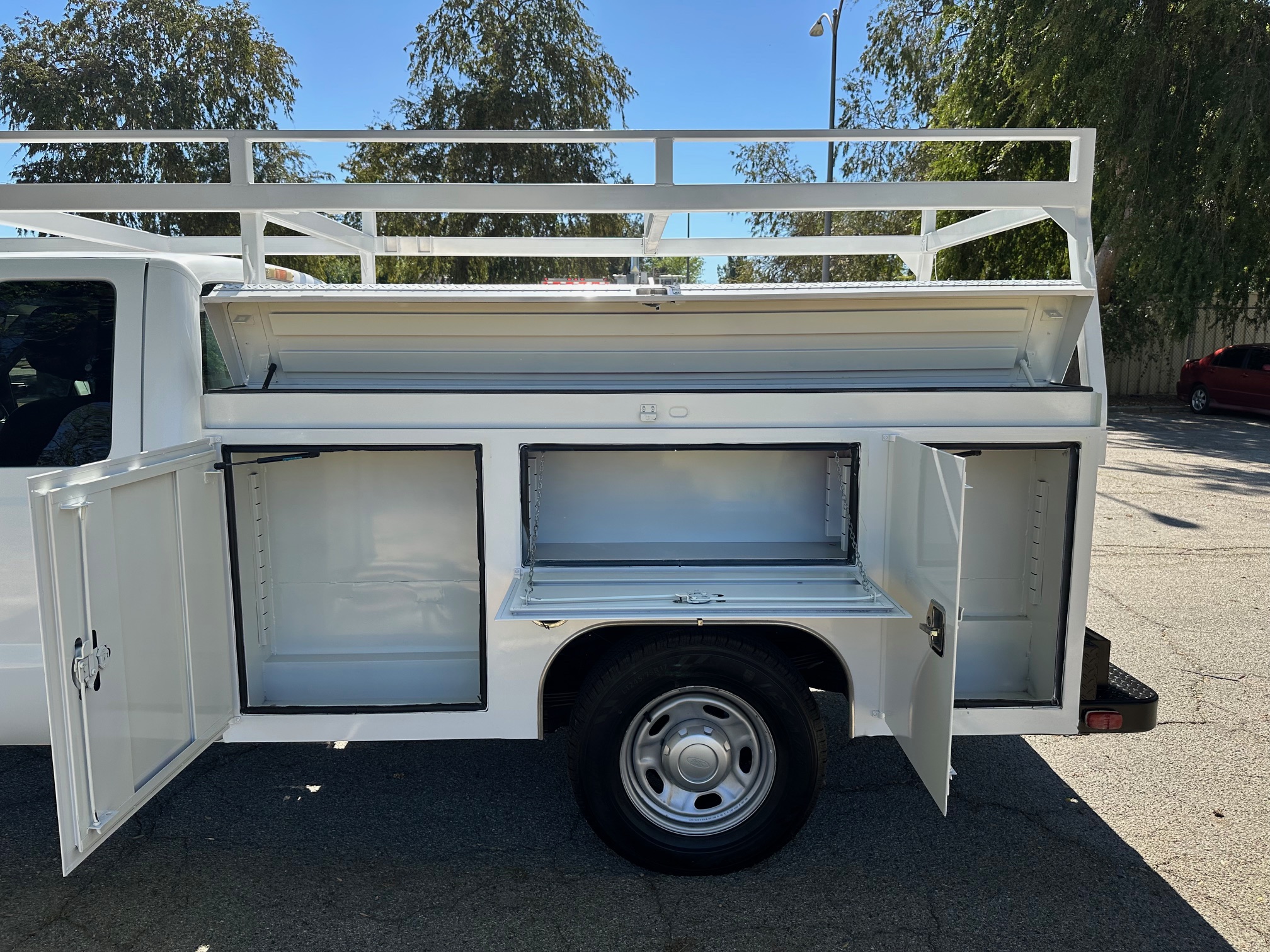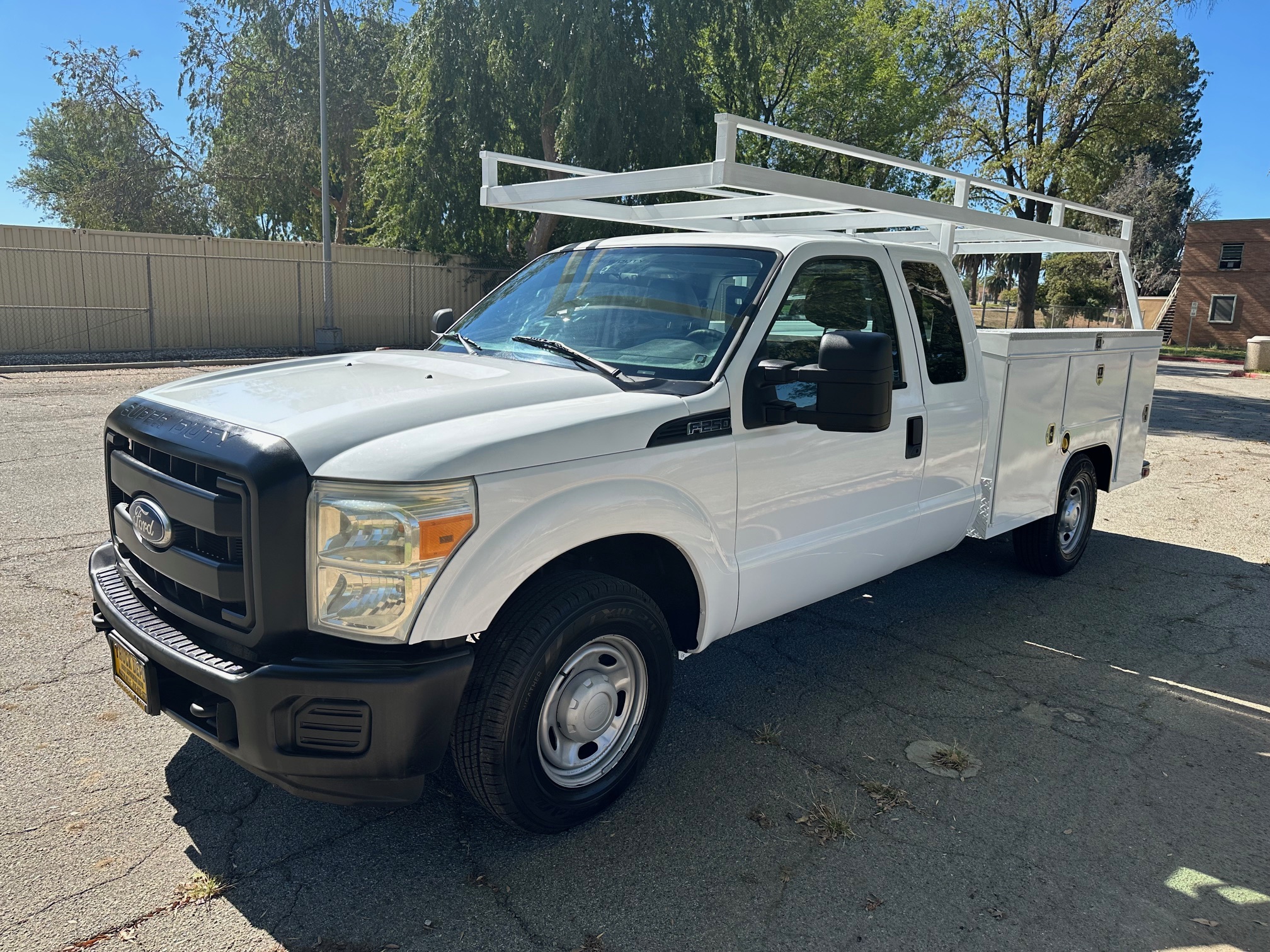 2011 Ford F-250 Extra Cab Service Body/ Utility Truck, 6.2L V-8, auto trans, a/c, tilt, 148k miles, trailer brakes, Scelzi service body, diamond plated top trays, ladder rack, new tires, just serviced, fleet maintained since new. Nationwide shipping and financing are available. Checkout all our inventory at TruckDepotLA.com.