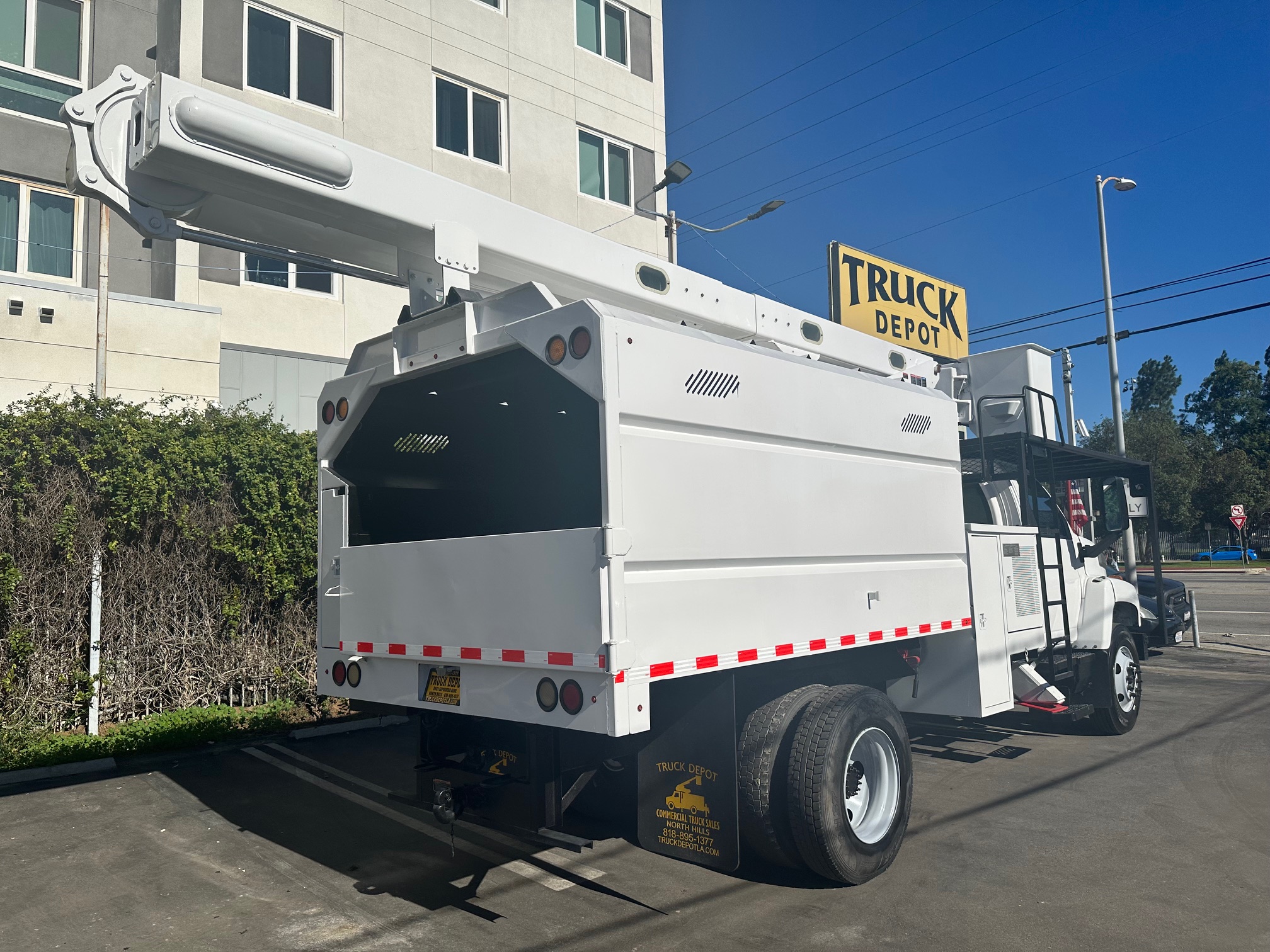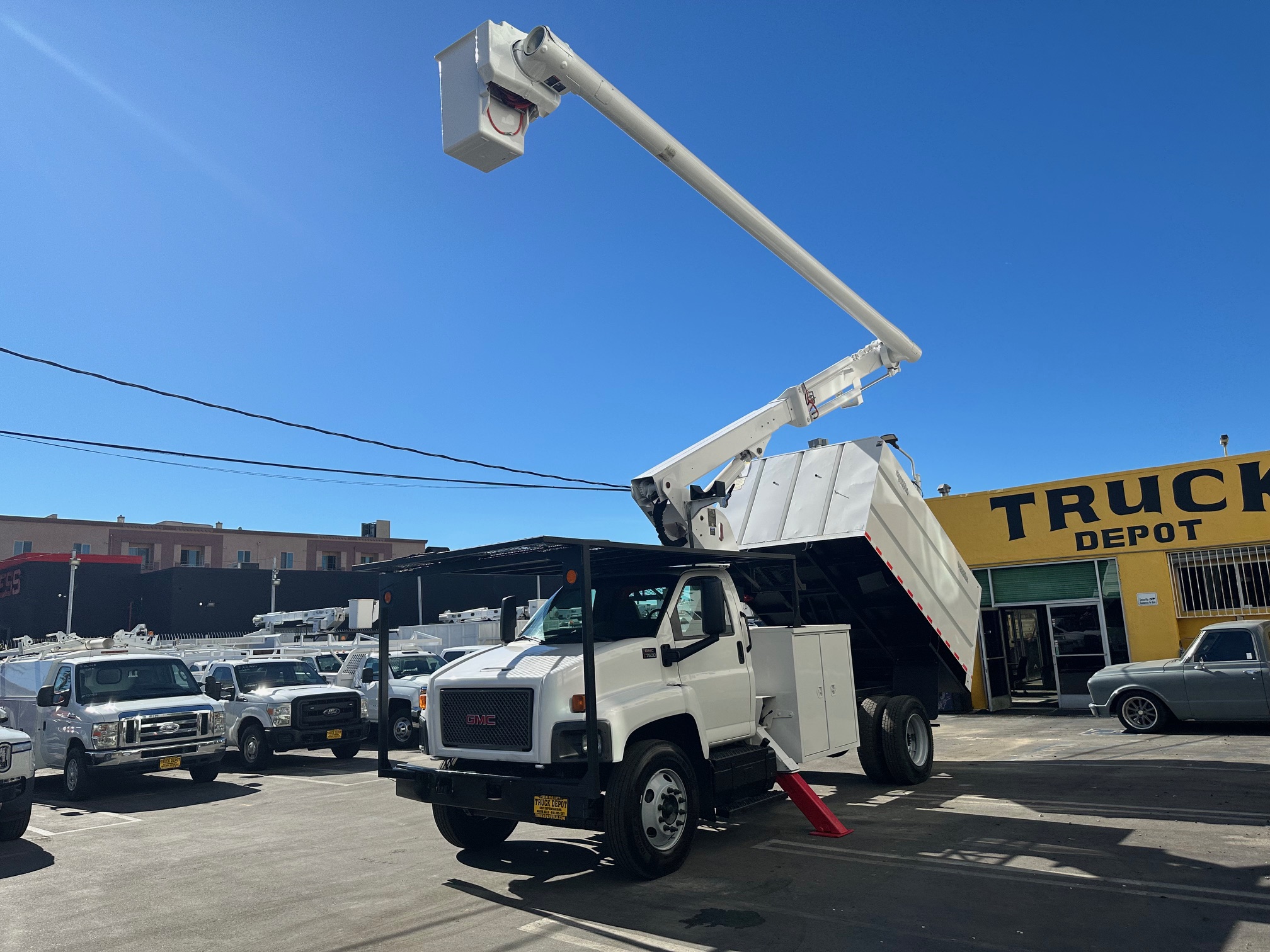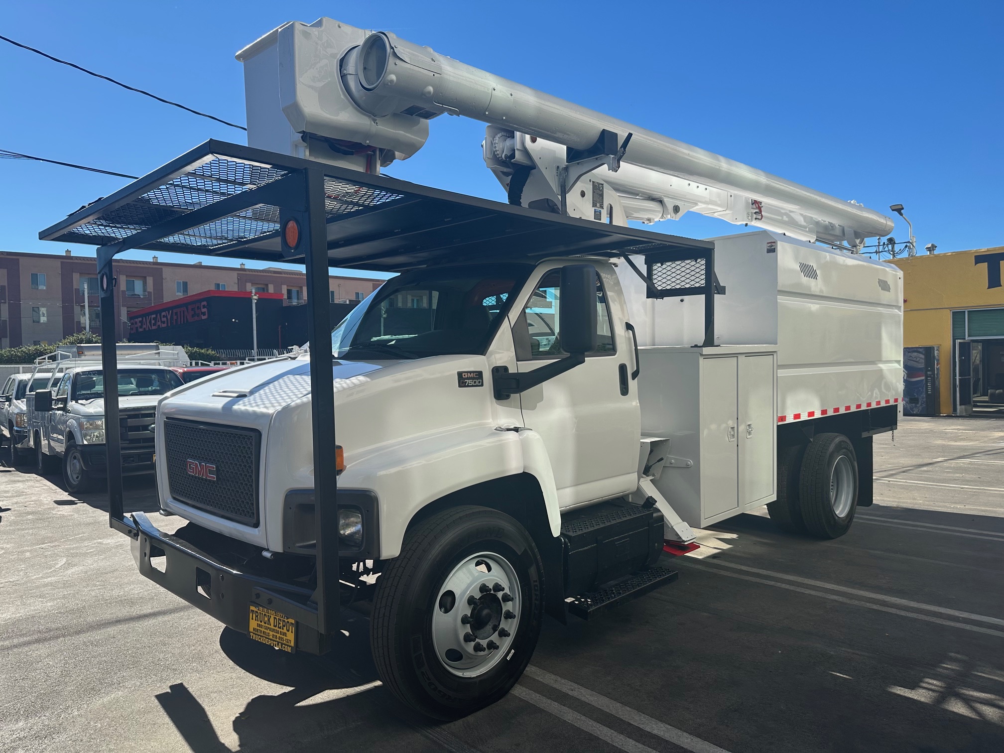 2008 GMC C-7500 Topkick Forestry Truck, 8.1L V-8, manual 6-speed trans, new clutch, trailer brakes, 92k miles, 30k G.V.W., hydraulic brakes, strobe lights, pony engine, Altec boom, model#LRV55, serial#1109CV8943, 55' platform height, 60' working height, 400 lbs. capacity, insulated boom and bucket, hydraulic tool circuit, pistol grip upper controller, outriggers, 11' SouthCo chip dump, pintle hitch, new front tires, 80% rear tread, just serviced, runs and operates great. Nationwide shipping and financing are available. Checkout all our inventory at TruckDepotLA.com.