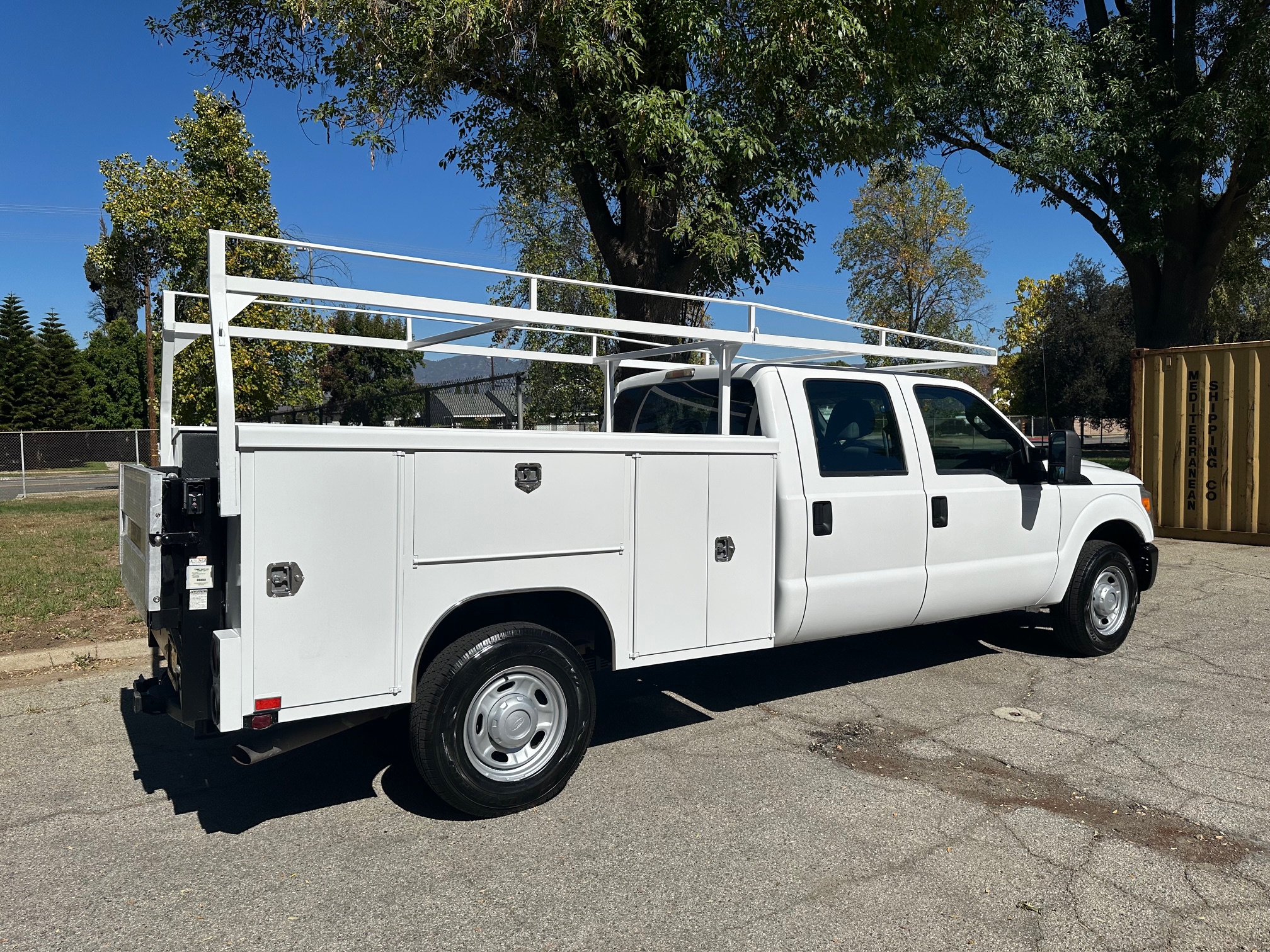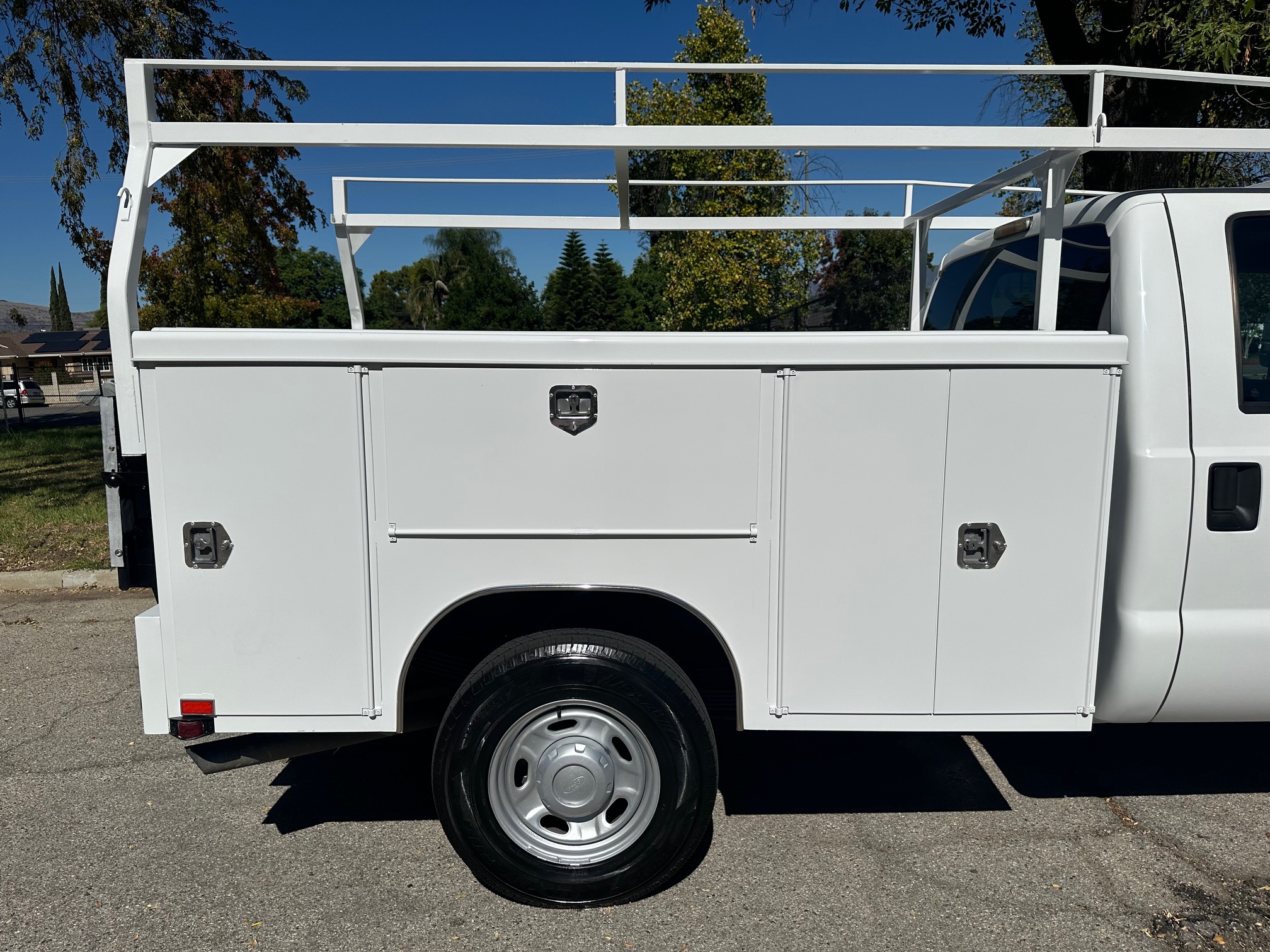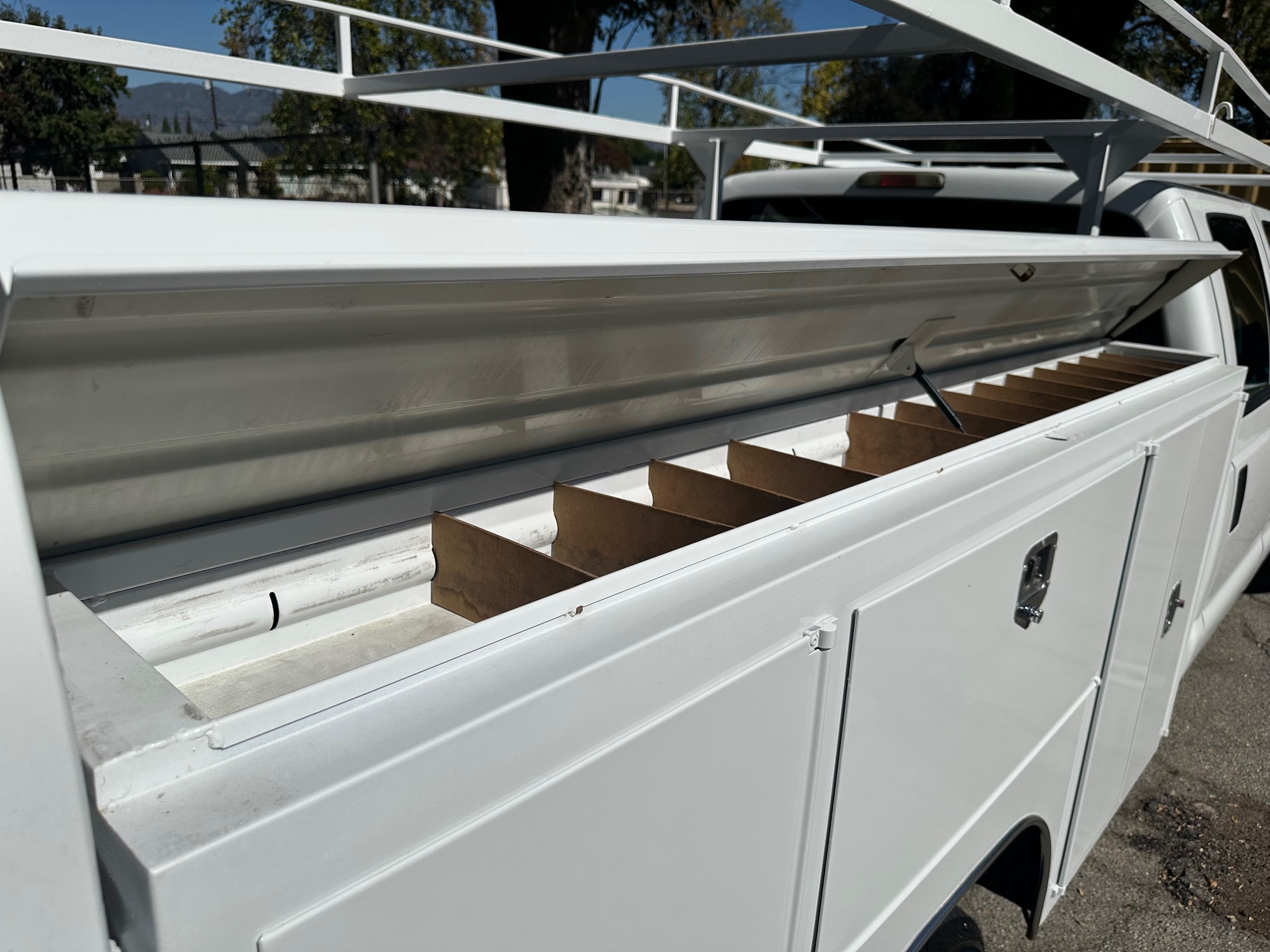 2011 Ford F-350 Crew Cab Service Body/ Utility Truck with Liftgate, 6.2L V-8, auto trans, low 59k miles, tilt, cruise, Bluetooth radio, trailer brakes, Pacific service body, top loader trays, ladder rack, spray in bedliner, tow pkg, Tommy aluminum liftgate, new tires, Ex-Gov., fleet maintained since new. Nationwide shipping and financing are available. Checkout all our inventory at TruckDepotLA.com.