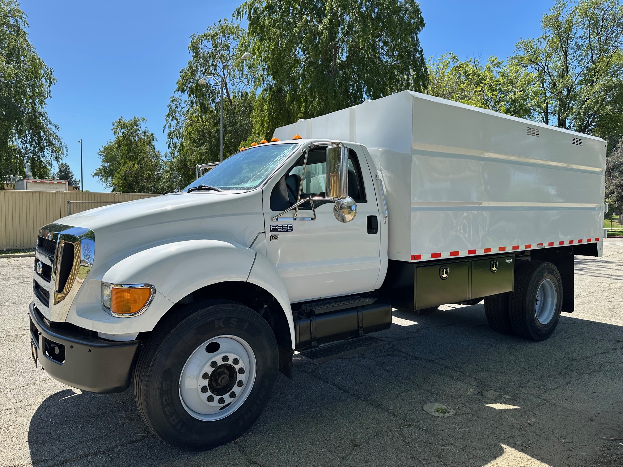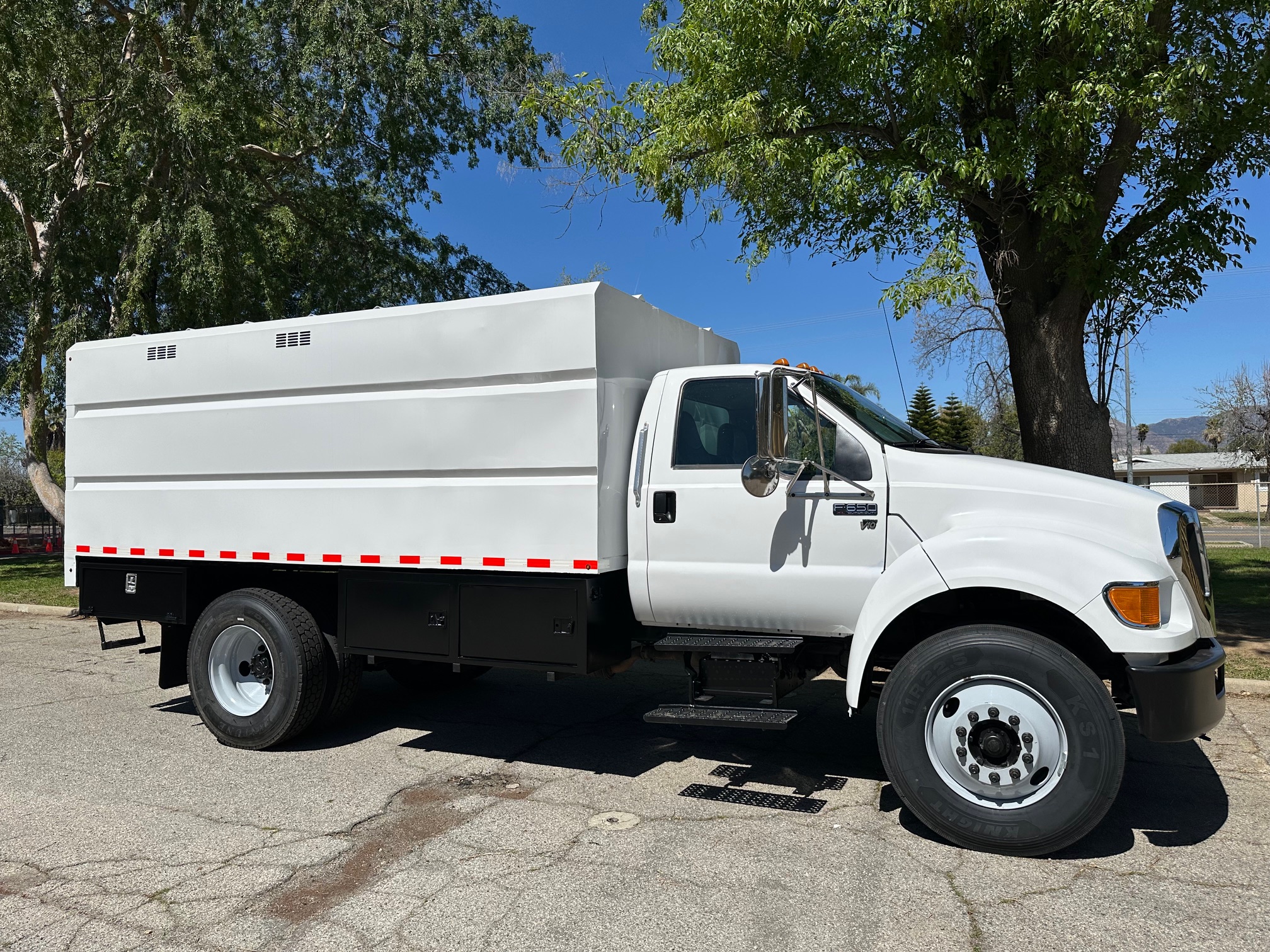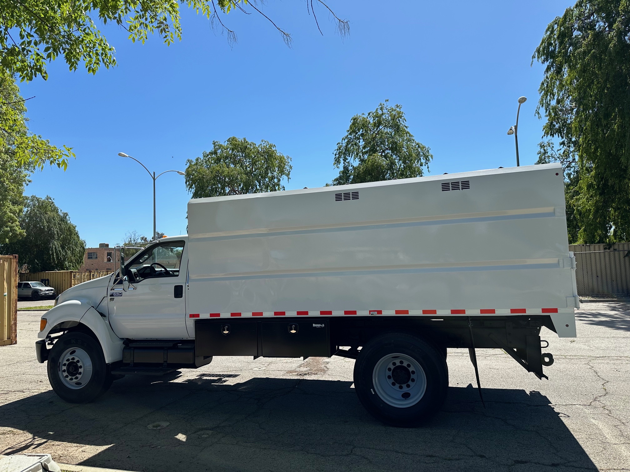 2013 Ford F-650 Chipper Dump Truck, 6.8L V-10, Allison auto trans, 63k miles, 25,900 g.v.w., no C.D.L. requaried, trailer brakes, p.t.o., 14' chip dump, tool bins, new tires, pintle hitch, new tires. Nationwide shipping and financing are available. Checkout all our inventory at TruckDepotLA.com.