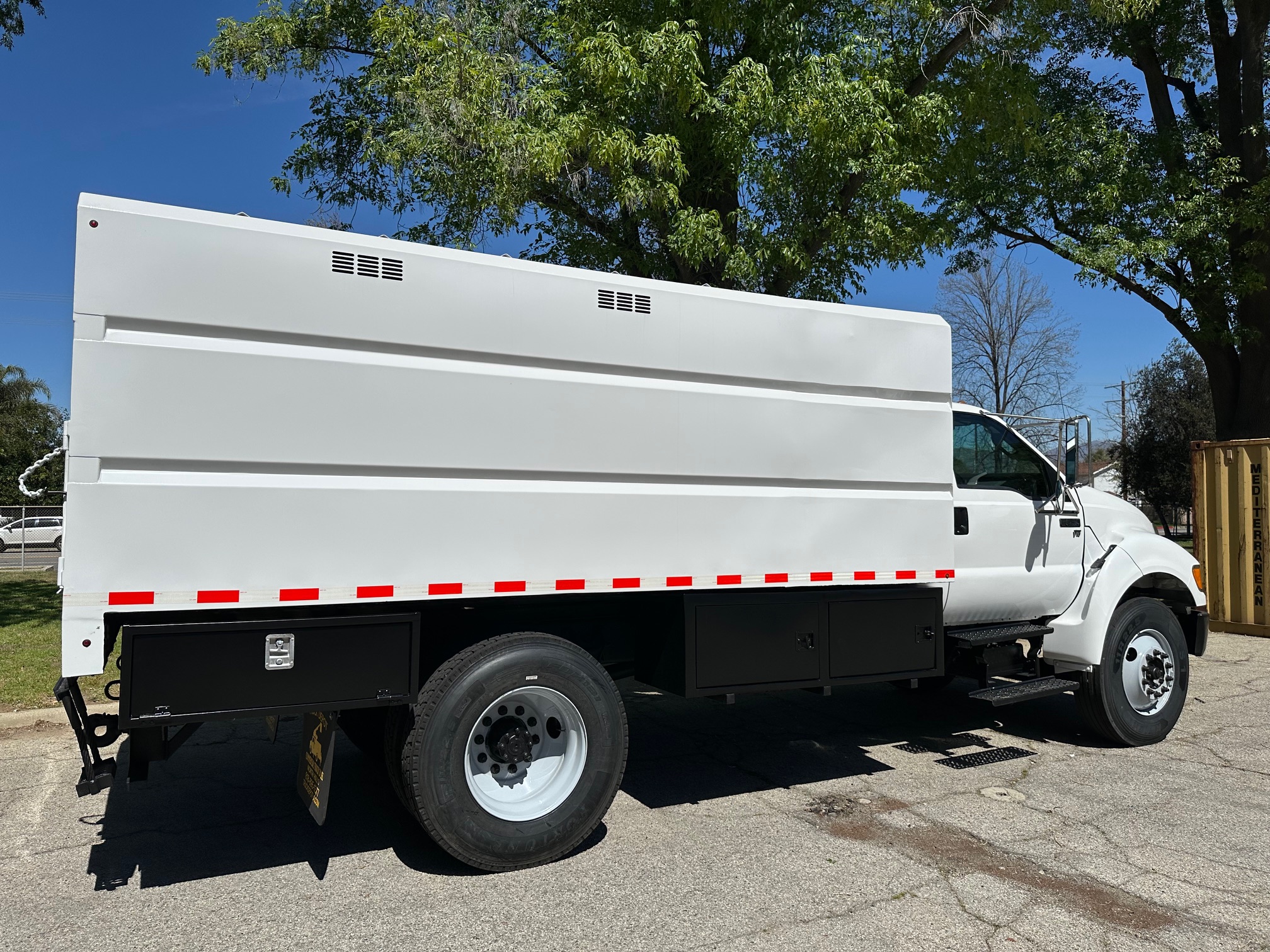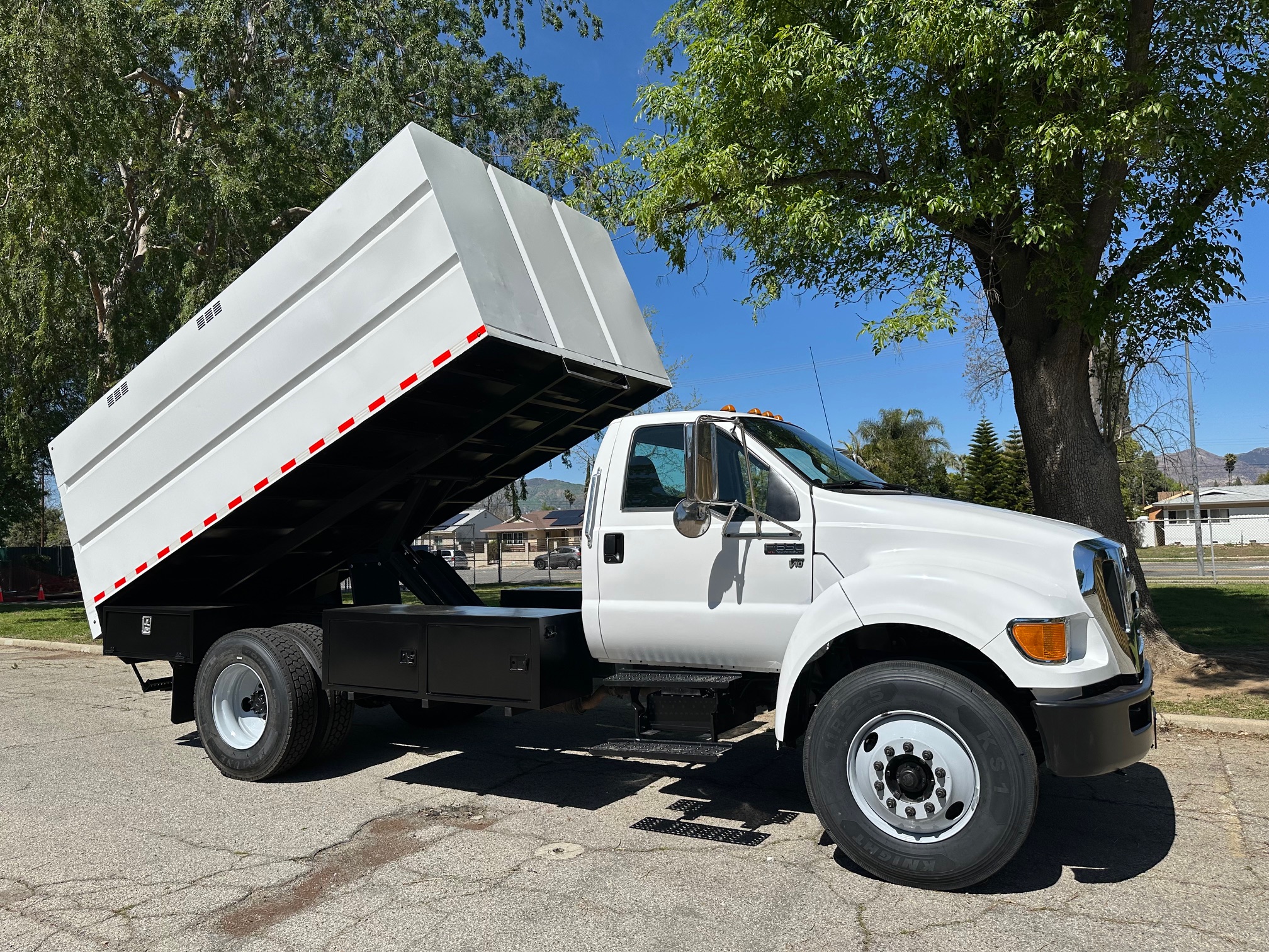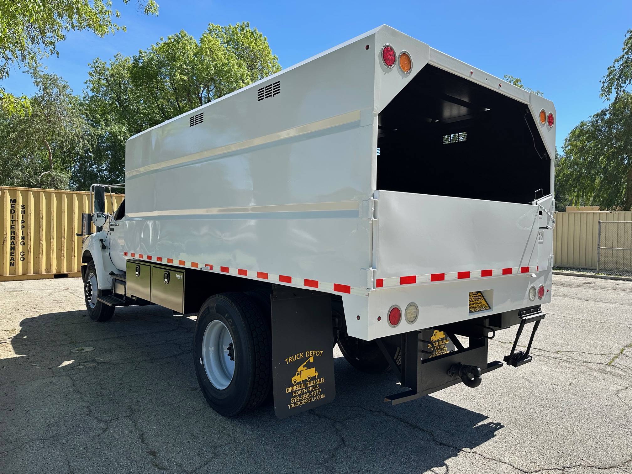2013 Ford F-650 Chipper Dump Truck, 6.8L V-10, Allison auto trans, 63k miles, 25,900 g.v.w., no C.D.L. requaried, trailer brakes, p.t.o., 14' chip dump, tool bins, new tires, pintle hitch, new tires. Nationwide shipping and financing are available. Checkout all our inventory at TruckDepotLA.com.
