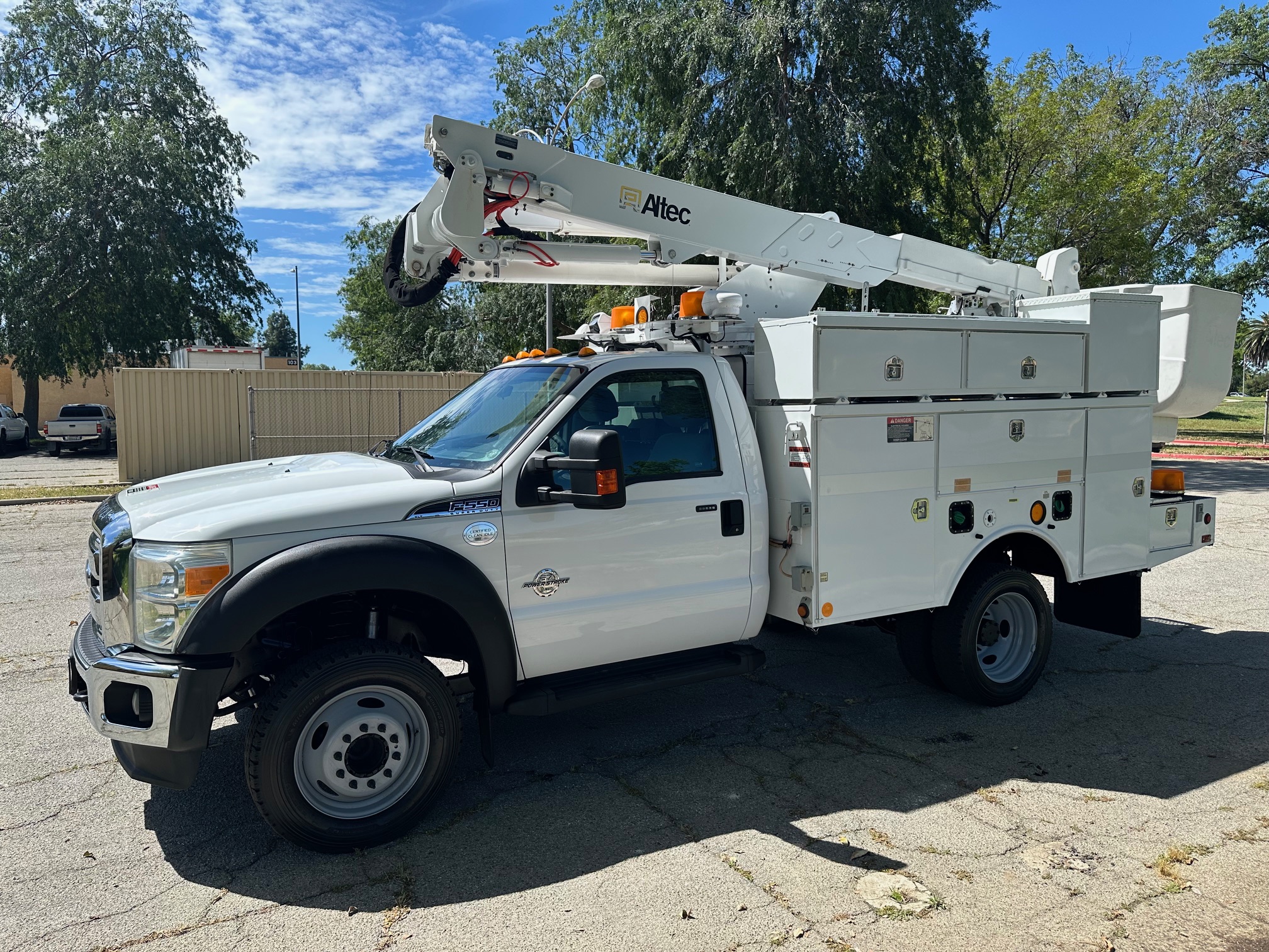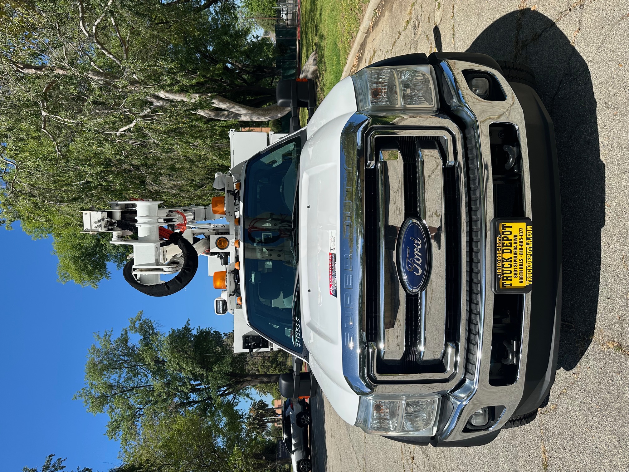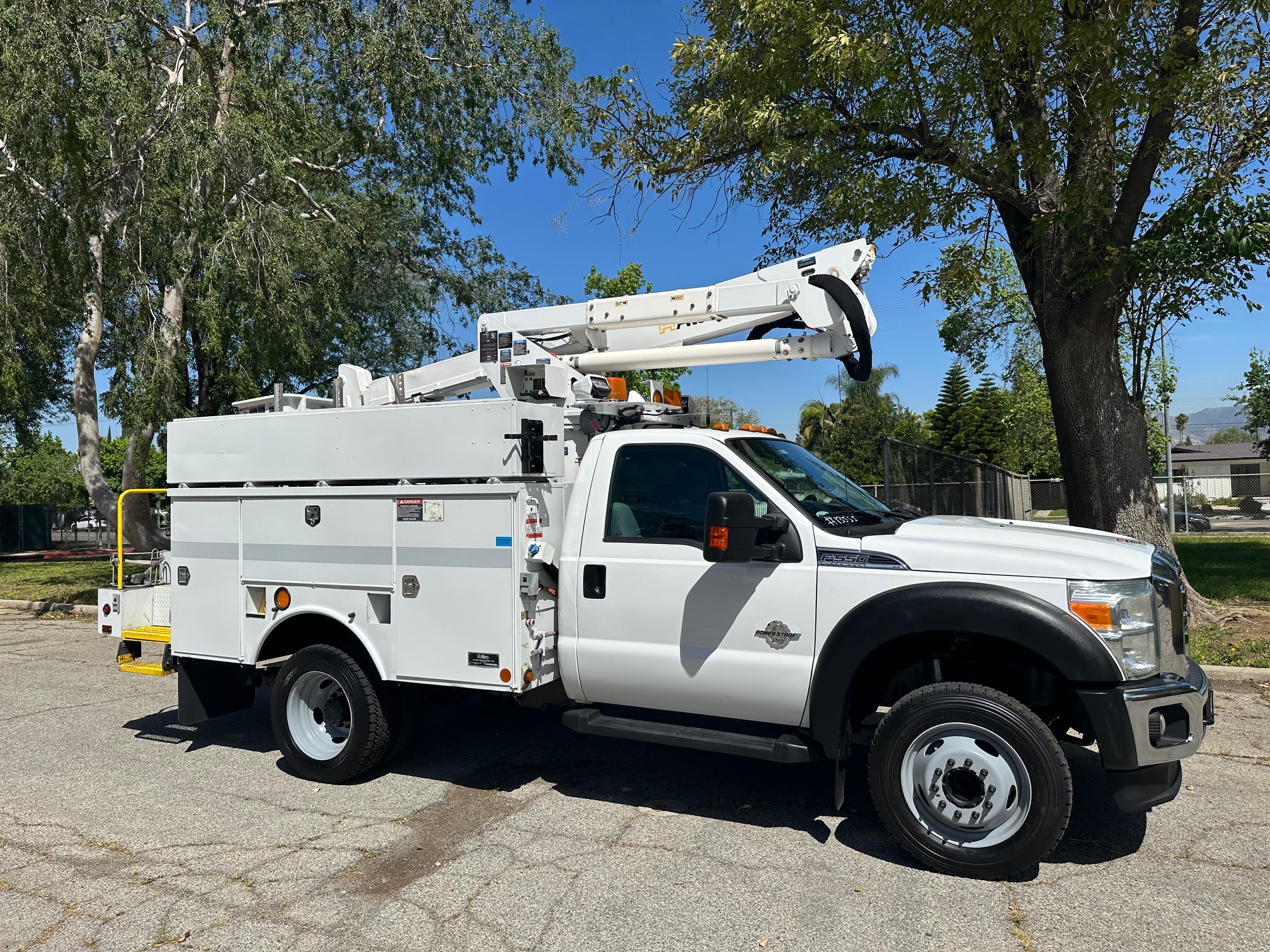 This 2016 Ford F-550 Bucket Truck is a well-maintained, fleet-serviced unit powered by a dependable 6.7L Power Stroke diesel engine paired with an automatic transmission. With 124,000 miles, it’s equipped with air conditioning, tilt steering, cruise control, power windows, locks, and mirrors, a backup camera, Bluetooth radio, and alarm system. The truck features a fully outfitted service body with lighted tool bins, multiple 110V outlets, a power inverter, trailer brake setup, and a slide-lock security bar. Additional equipment includes strobe lights, remote flood and spot lights, auxiliary backup lights, and a traffic director for enhanced job site safety. It carries a 19,500 GVWR and is fitted with an Altec AT37-G insulated boom (serial #0516DE19166) with a 350 lb capacity, pistol grip upper controls, side-to-side basket rotation, and a hydraulic tool circuit. The boom has been recently inspected, the truck has just been serviced, and it runs and operates excellently with over 90% tire tread remaining. Nationwide shipping and financing options are available. Checkout all our inventory at TruckDepotLA.com.