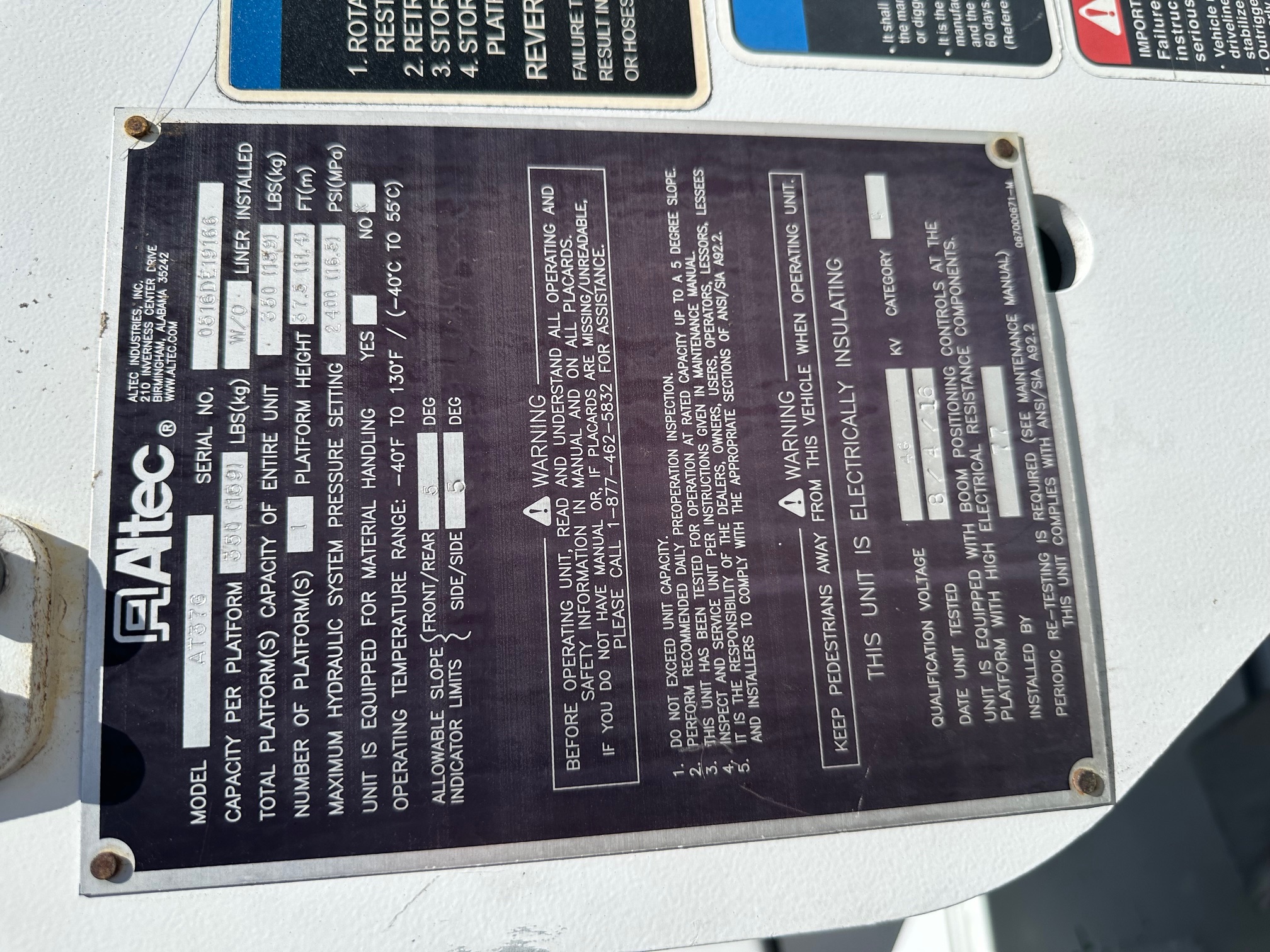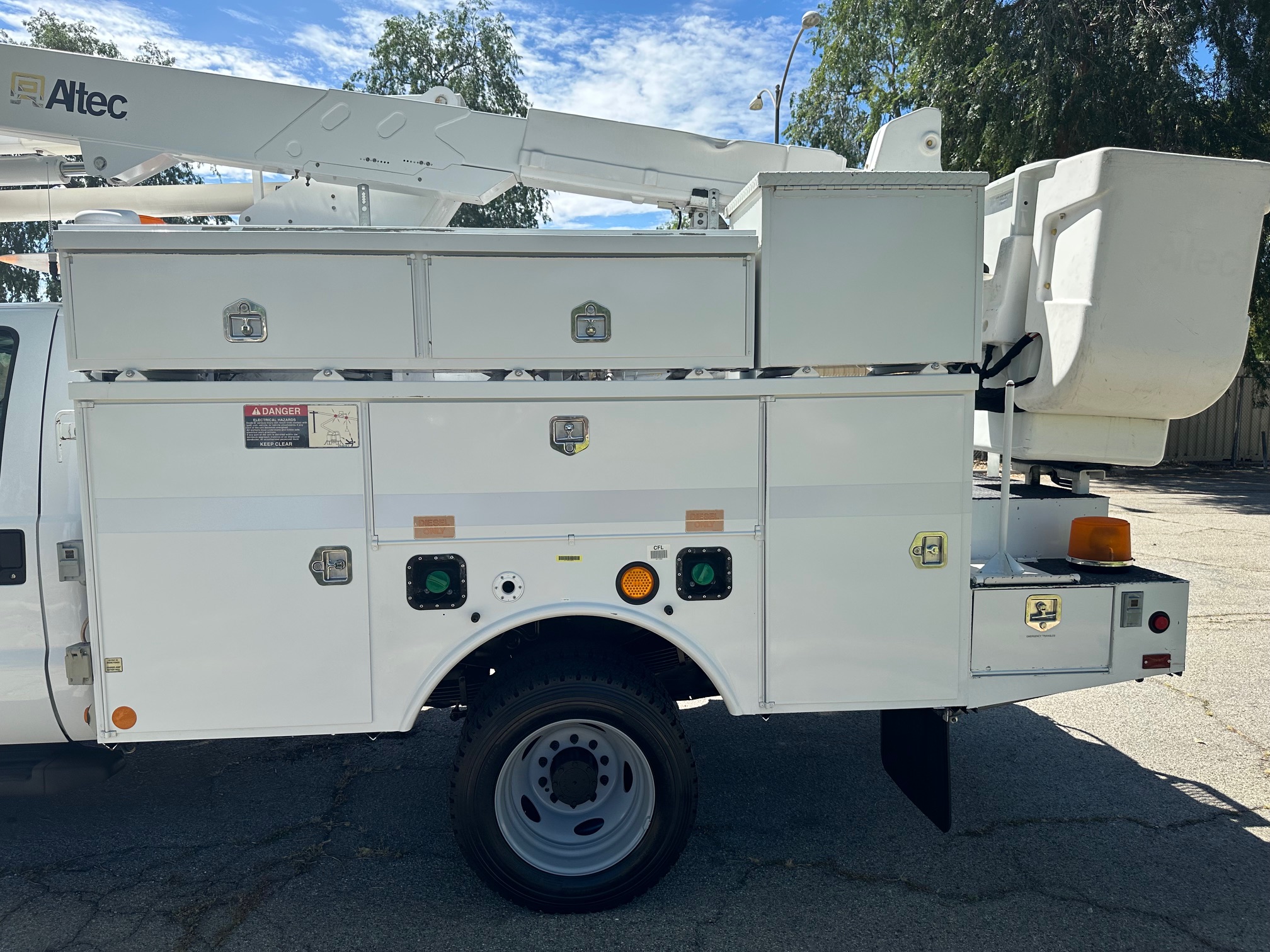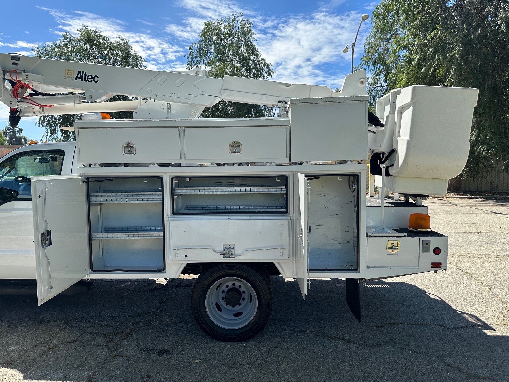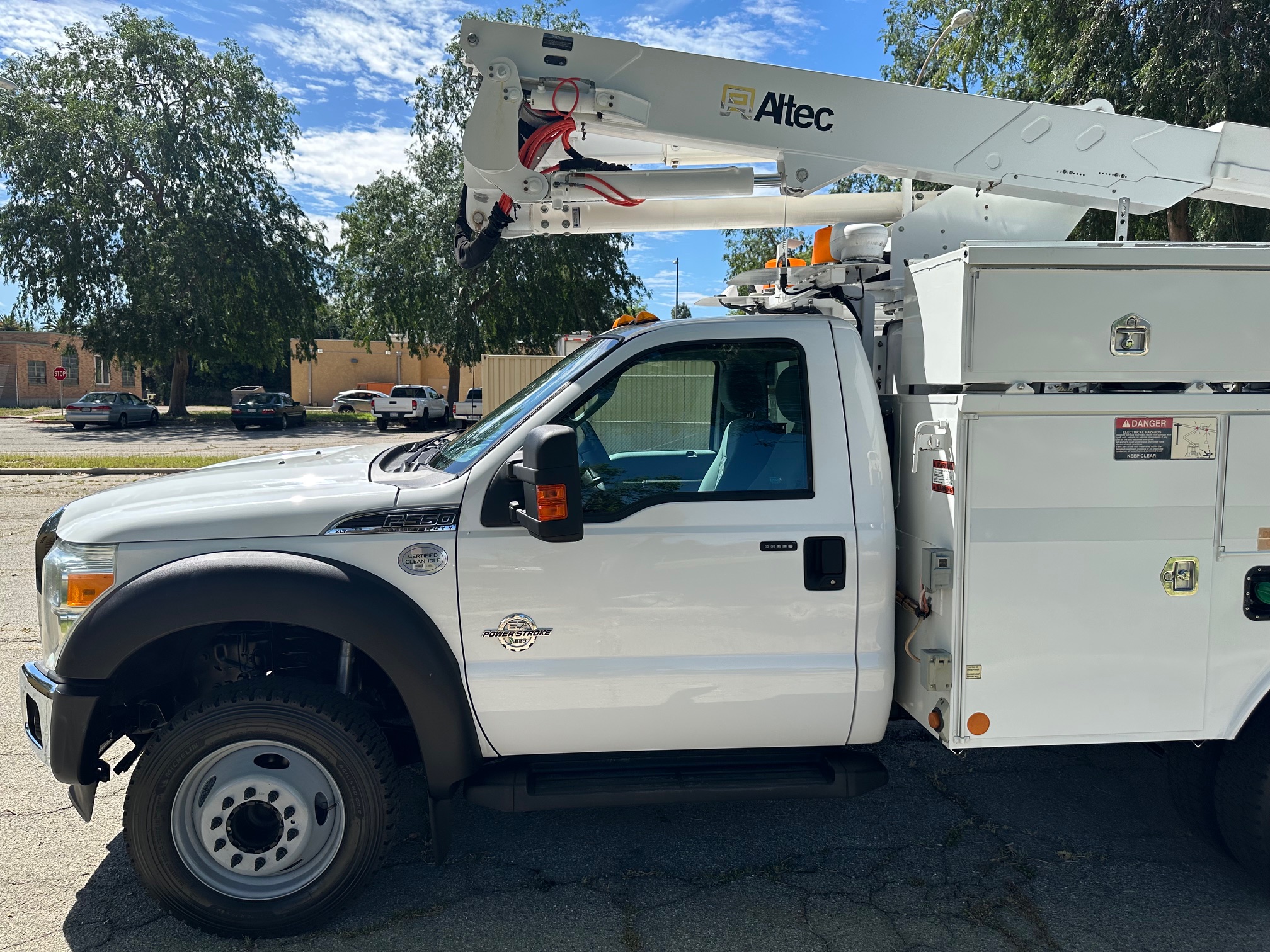 This 2016 Ford F-550 Bucket Truck is a well-maintained, fleet-serviced unit powered by a dependable 6.7L Power Stroke diesel engine paired with an automatic transmission. With 124,000 miles, it’s equipped with air conditioning, tilt steering, cruise control, power windows, locks, and mirrors, a backup camera, Bluetooth radio, and alarm system. The truck features a fully outfitted service body with lighted tool bins, multiple 110V outlets, a power inverter, trailer brake setup, and a slide-lock security bar. Additional equipment includes strobe lights, remote flood and spot lights, auxiliary backup lights, and a traffic director for enhanced job site safety. It carries a 19,500 GVWR and is fitted with an Altec AT37-G insulated boom (serial #0516DE19166) with a 350 lb capacity, pistol grip upper controls, side-to-side basket rotation, and a hydraulic tool circuit. The boom has been recently inspected, the truck has just been serviced, and it runs and operates excellently with over 90% tire tread remaining. Nationwide shipping and financing options are available. Checkout all our inventory at TruckDepotLA.com.