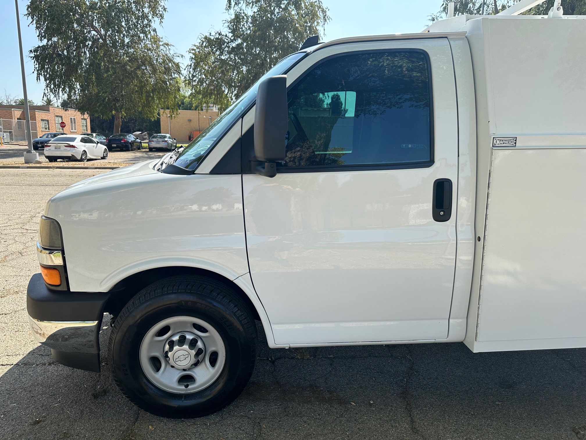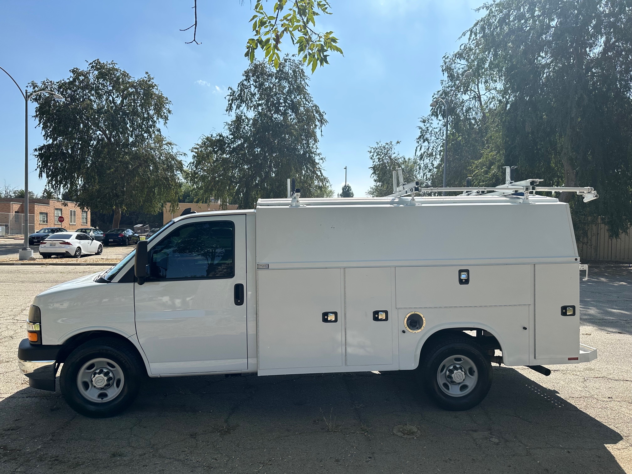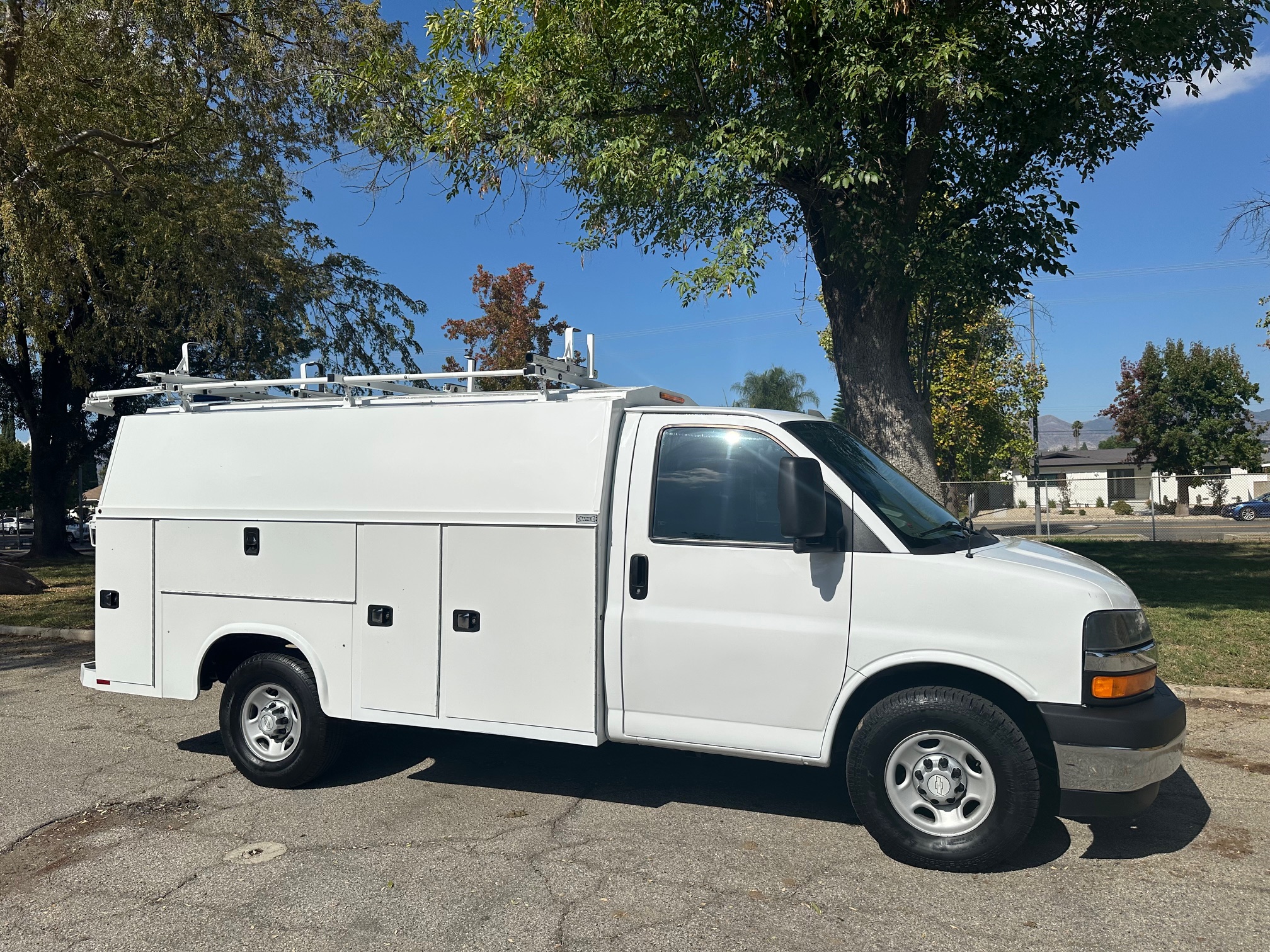 2017 Chevy Express 3500 Cutaway Plumber Van, 6.0L V-8, auto trans, A/C, tilt, cruise, power windows and locks, 120k miles, steering wheel controls, Knapheide service body, cab to body entry, 11' body, conduit box, tool chest, ladder racks, tow pkg, 90%+ tire tread, just serviced, ready to be put to work. Nationwide shipping and financing are available. Checkout all our inventory at TruckDepotLA.com.
