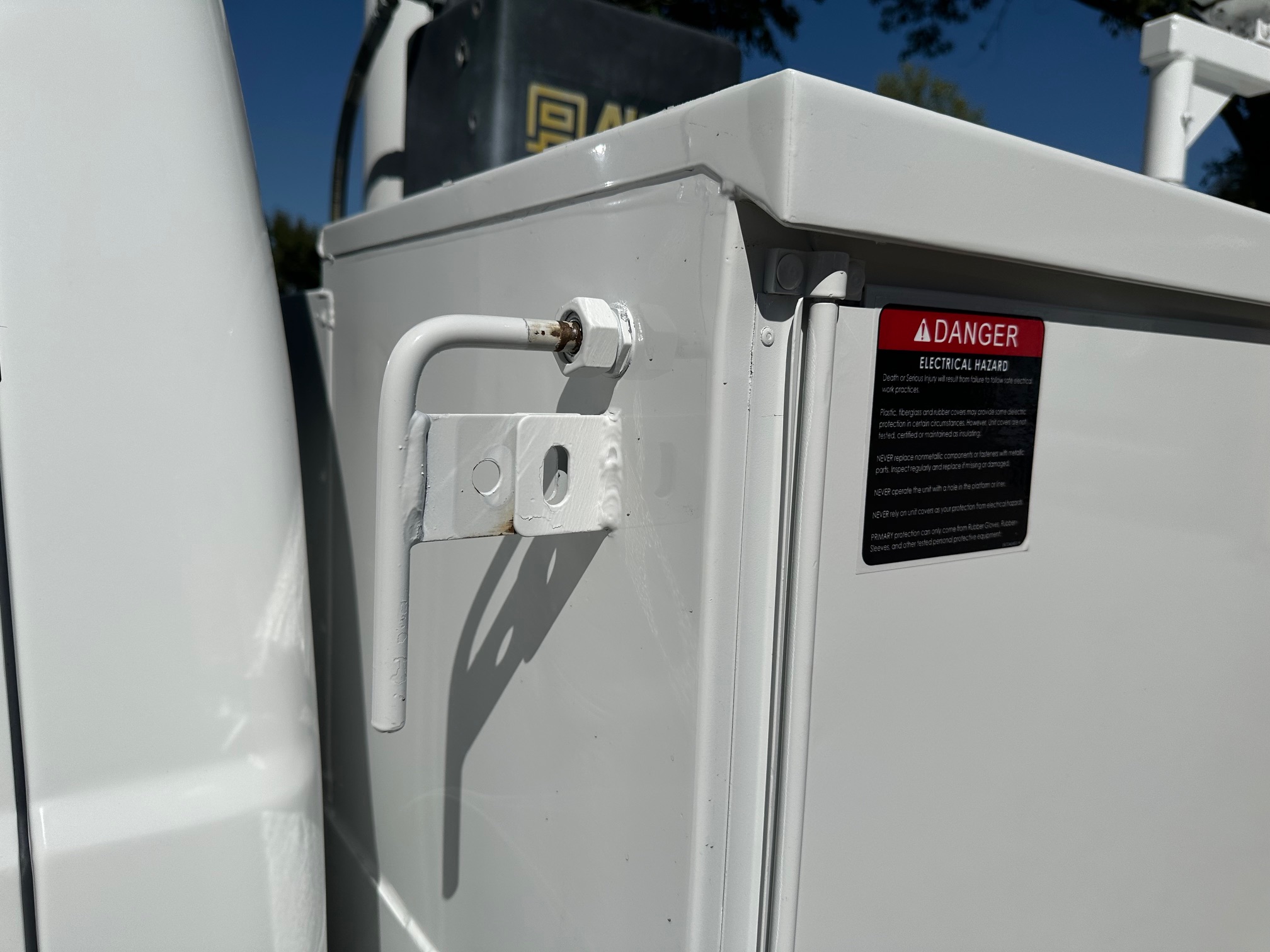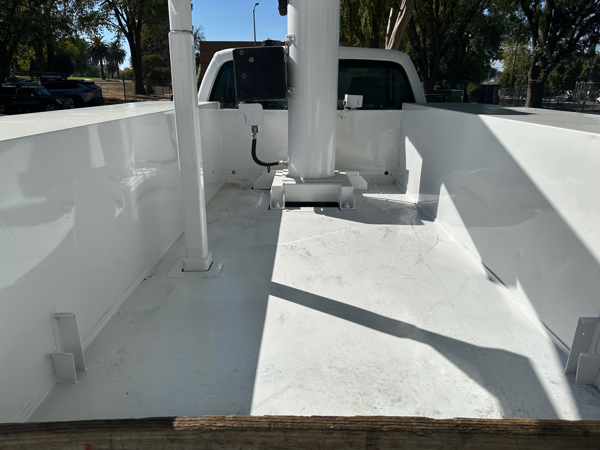 The utility body offers ample storage options and is constructed from steel. All storage compartments are in good condition, with all doors functioning properly.