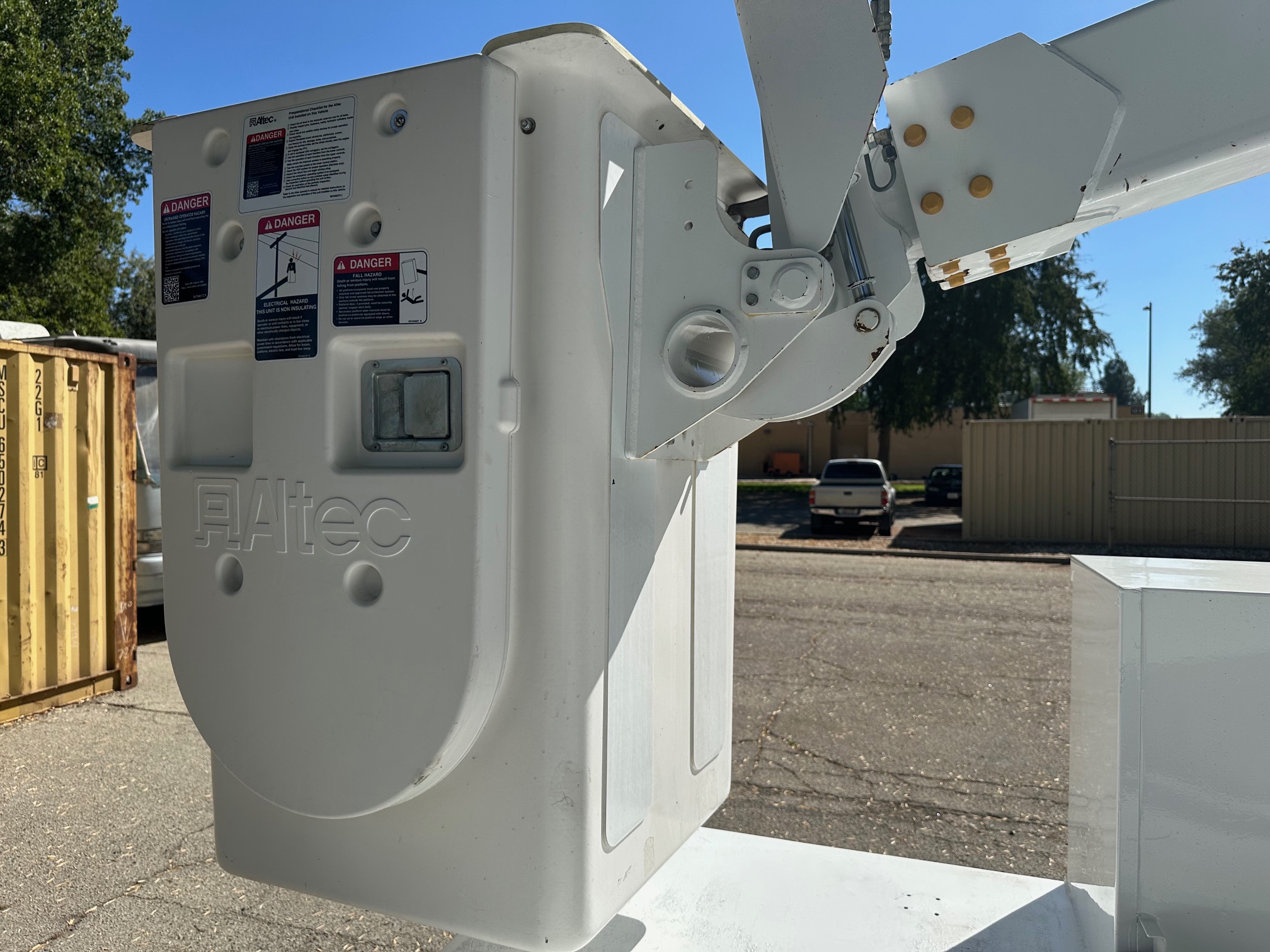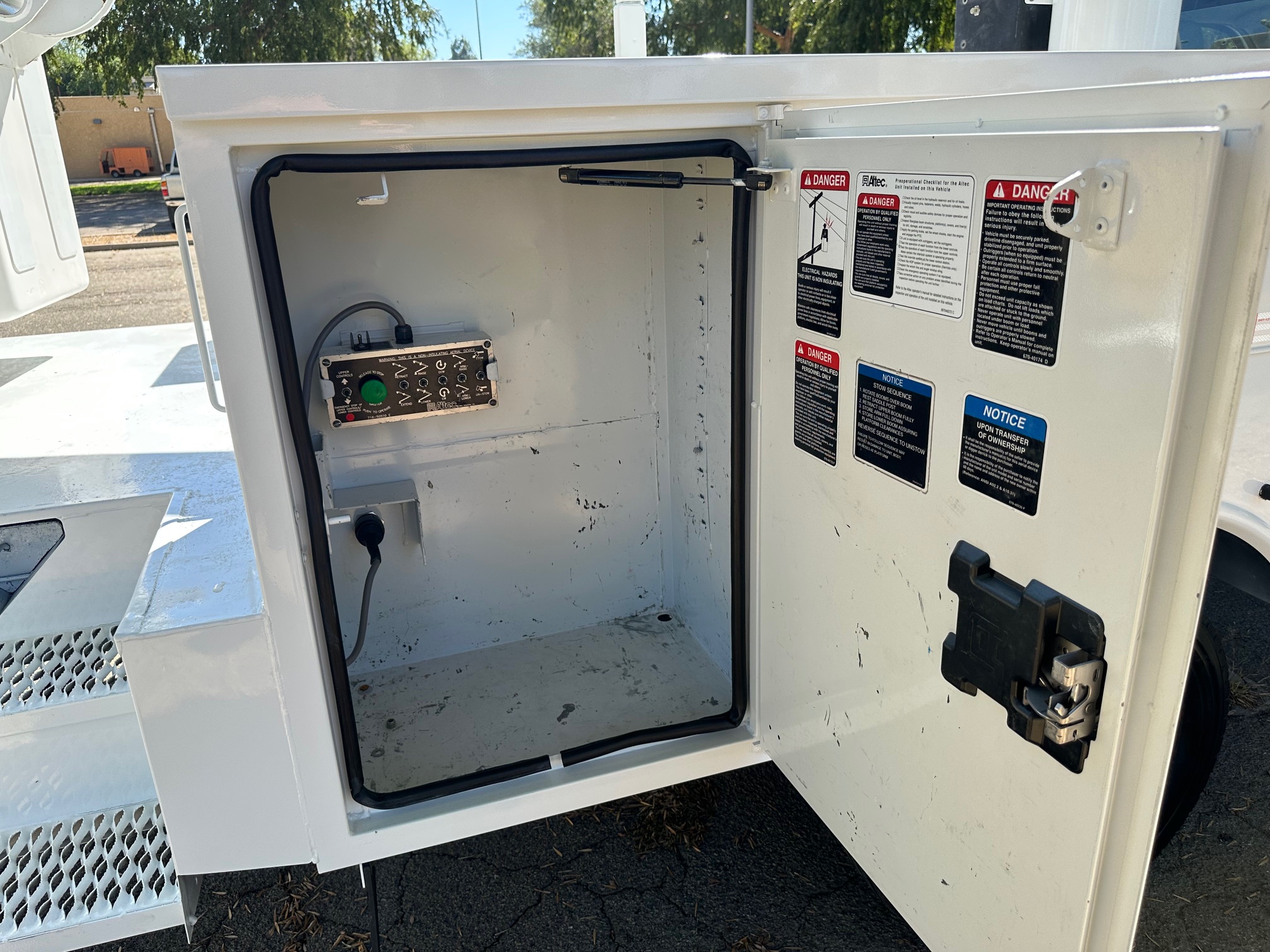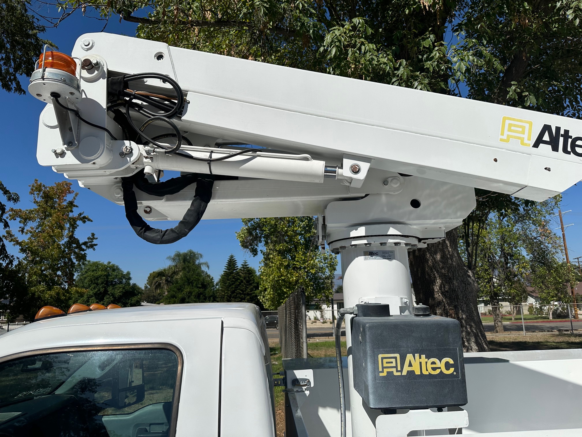 The automatic transmission shifts seamlessly, while the Altec AT235 42' bucket operates flawlessly from both control stations—bucket control and pedestal-mounted levers. The PTO is easily operated from an in-cab switch. You'll appreciate the smooth and stable functionality of the bucket, with a tight boom that shows no major wear or play.