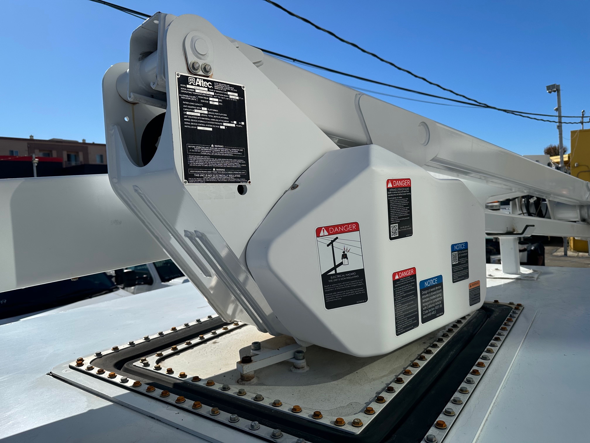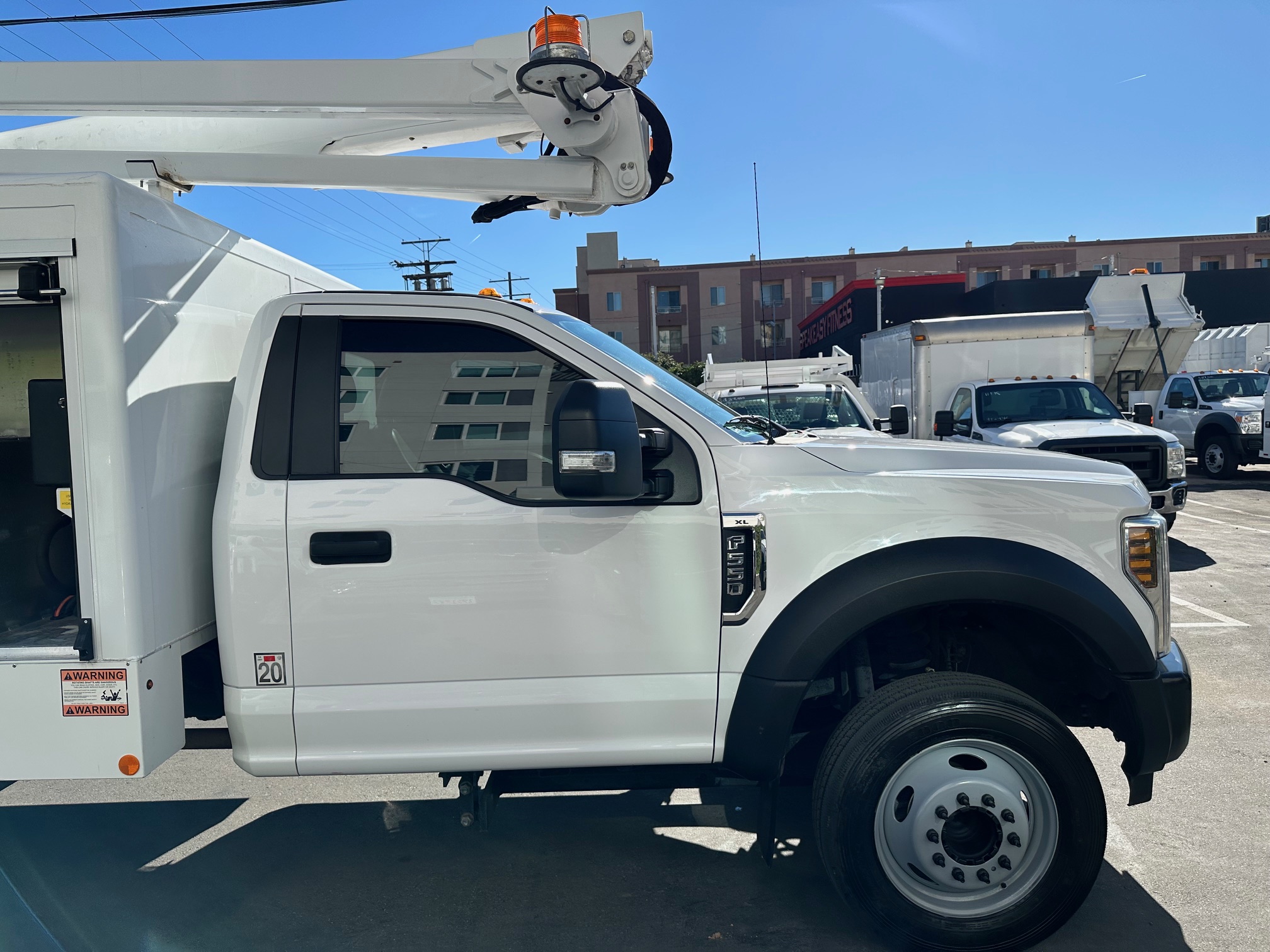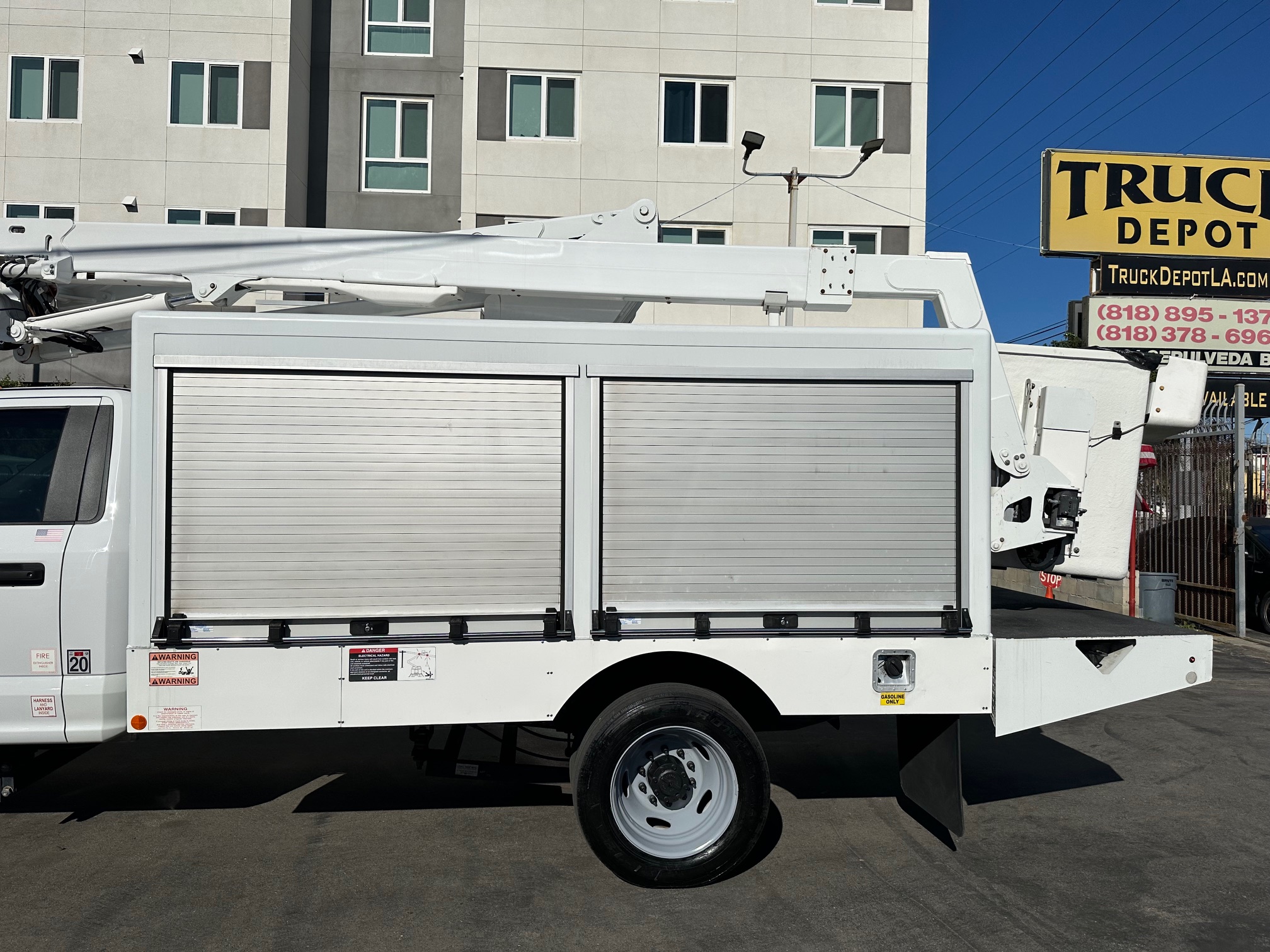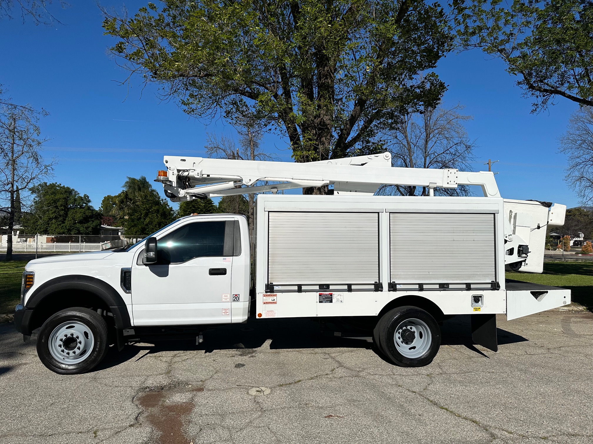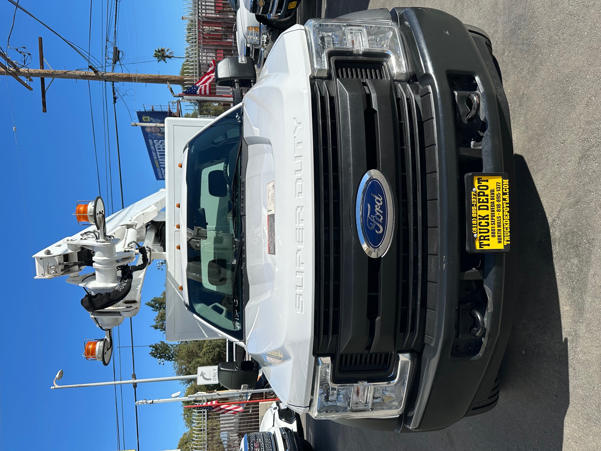 2019 Ford F-550 Bucket Truck/ Boom Truck 6.8L V-10, auto trans, A/C, tilt, cruise, steering wheel controls, 163k miles, power windows and lock, power mirrors, alarm, 19,500 g.v.w., strobe lights, backup alarm, Altec aluminum 11' body, large capacity ladder tunnel and long bulb storage, Altec boom, model#AT248F, 43'6" platform height, 48'6" working height, serial#1219FL0576, 350 lbs. capacity, pistol grip upper controller, self leveling platform, lower assist controls, insulated boom and basket, side to side basket rotation, 110v outlet at boom tip, power inverter, 80% rear tire tread, new front tires, tow pkg, clean original paint, no rust, fleet serviced and maintained since new. Nationwide shipping and financing are available. Checkout all our inventory at TruckDepotLA.com.