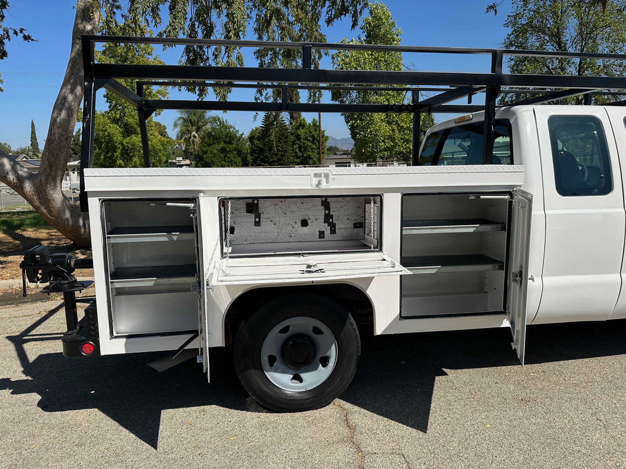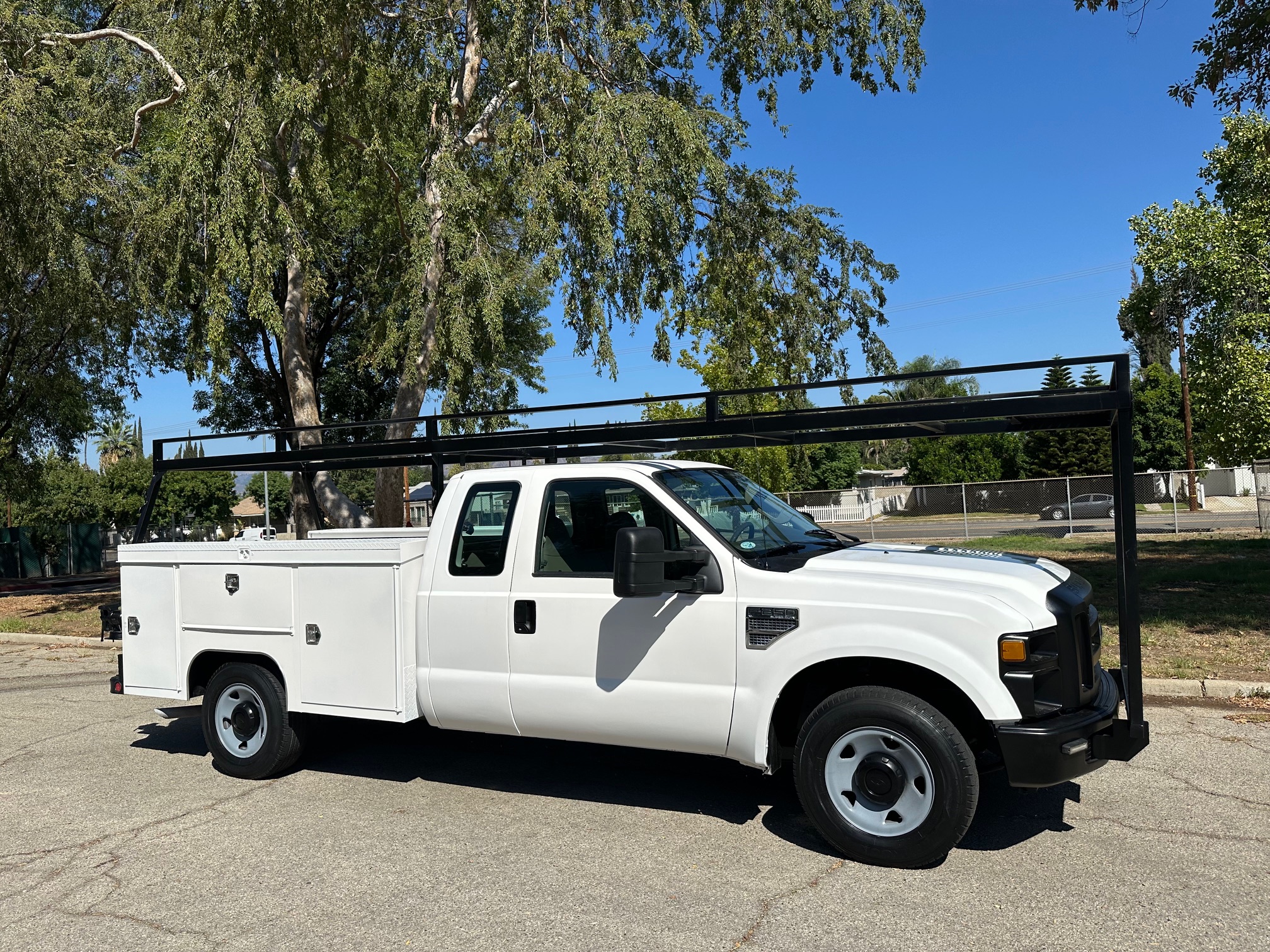 2008 Ford F-250 Extra Cab Utility Truck/ Service Body, 5.4L V-8, auto trans, a/c, trailer brakes, 143k miles, Scelzi service body, top loader trays, heavy duty rack, tow pkg, vice, 70%-80% tire tread, just serviced. Nationwide shipping and financing are available. Nationwide shipping and financing are available. Checkout all our inventory at TruckDepotLA.com.