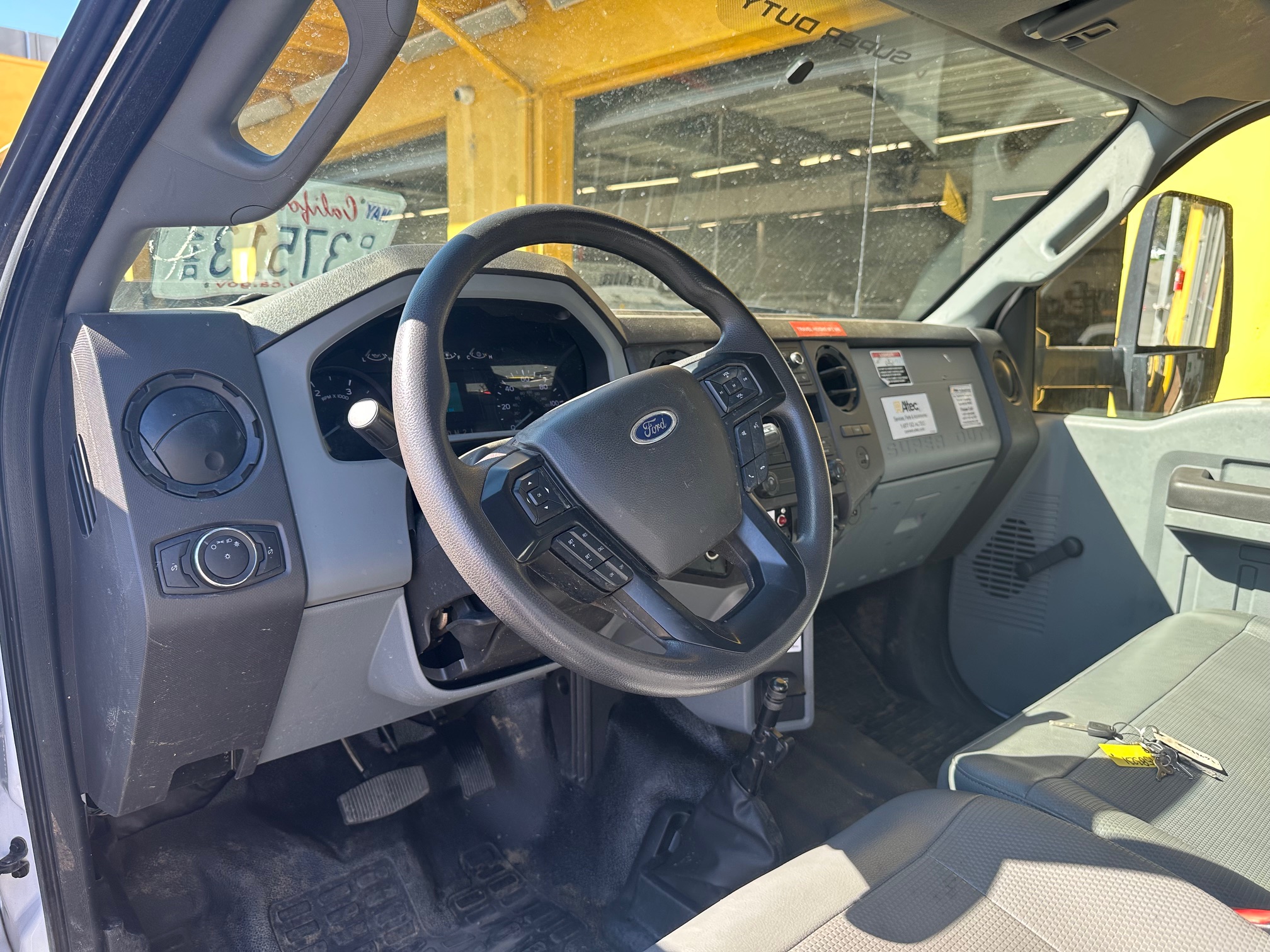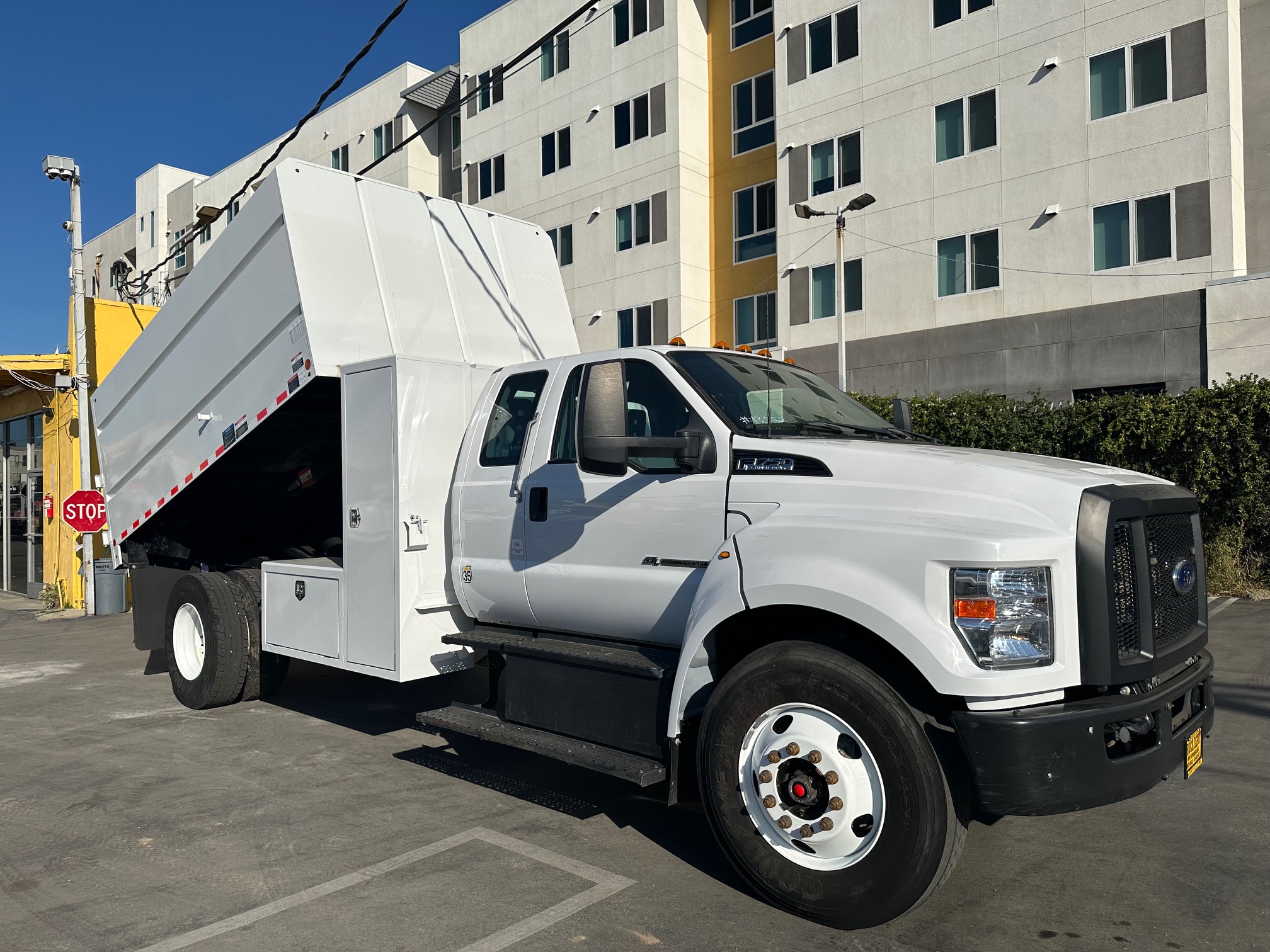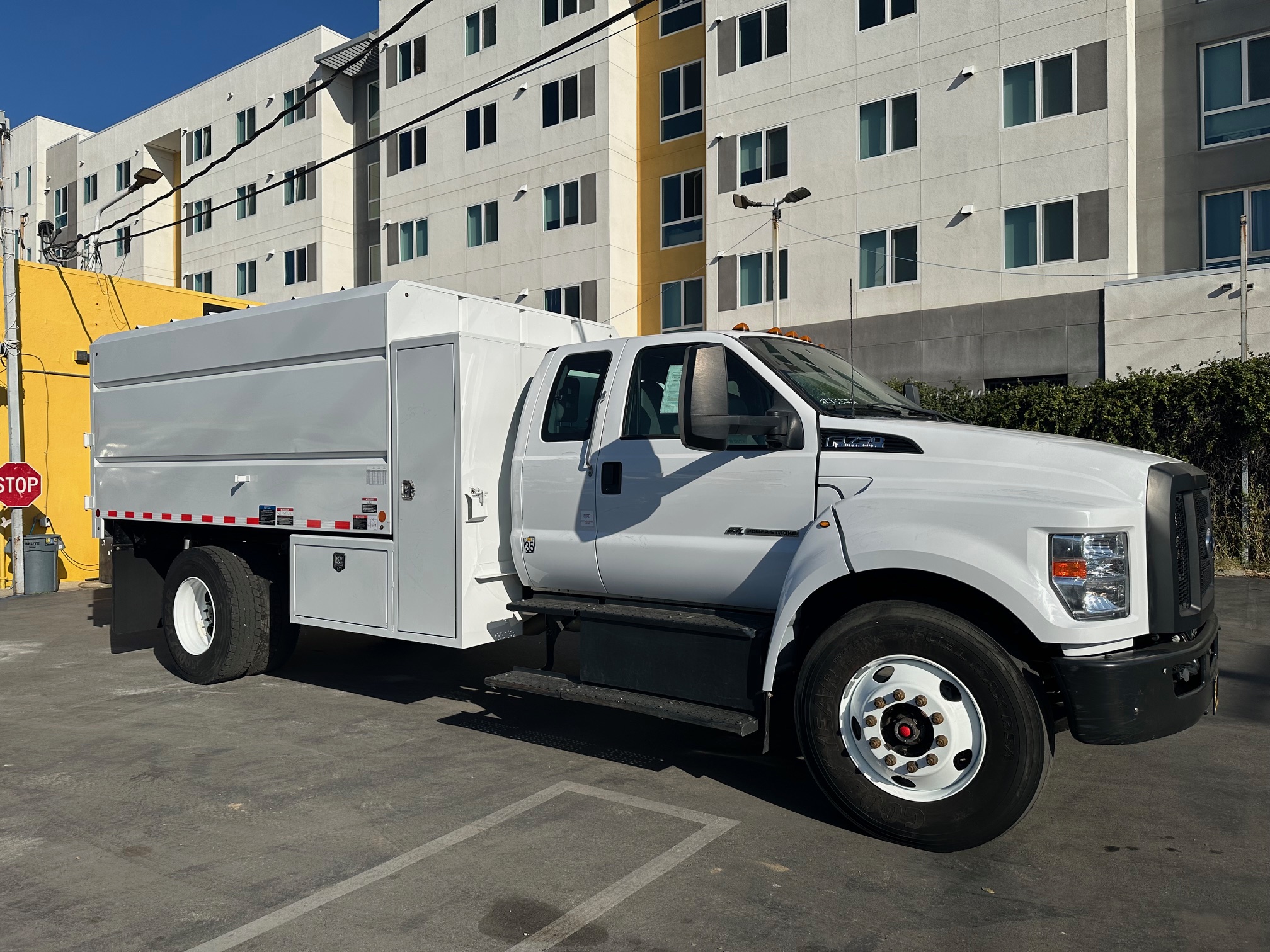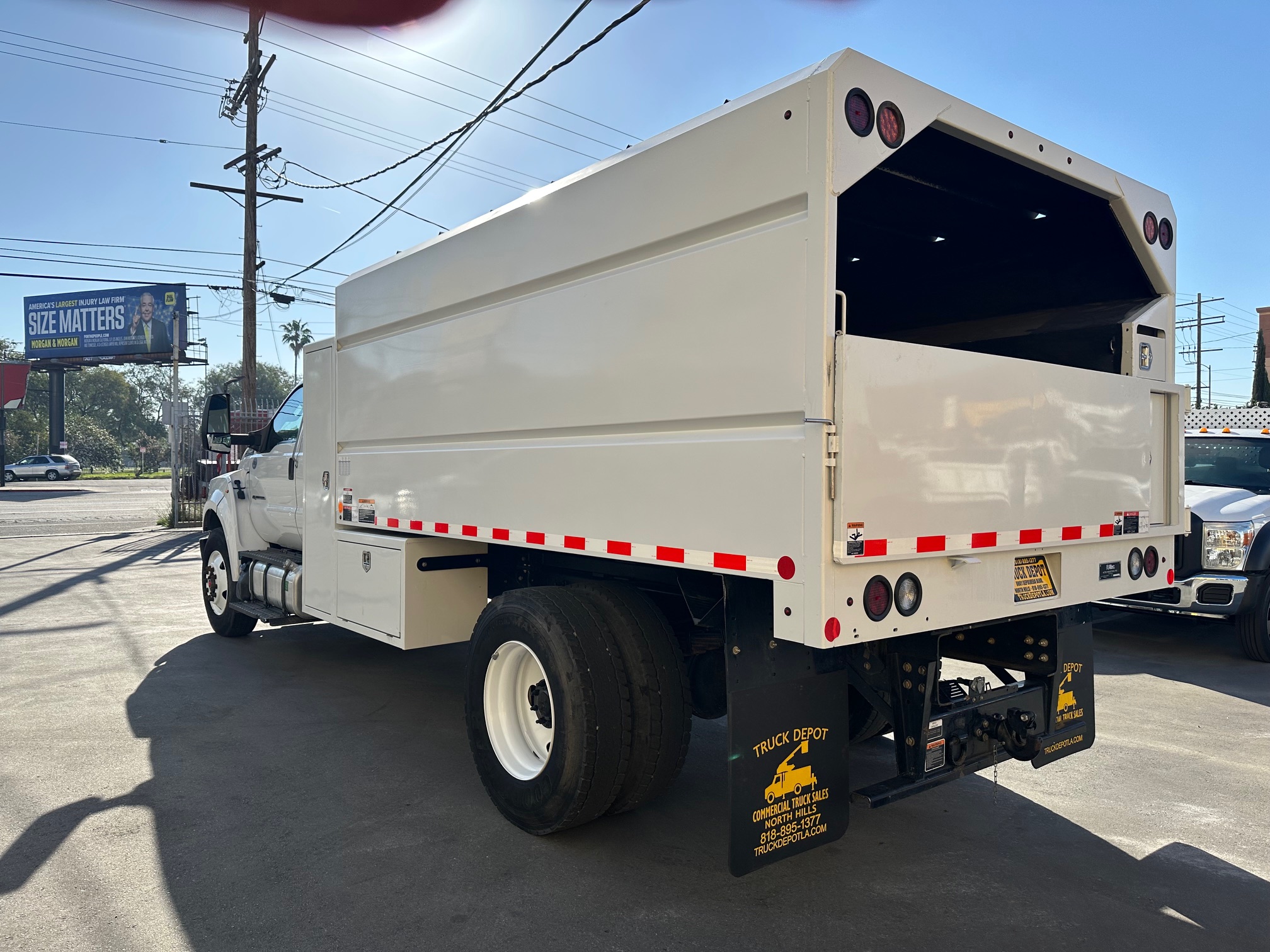 2022 Ford F-750 Extra Cab Chipper Dump Truck powered by a 6.7L Power Stroke diesel engine paired with an Allison automatic transmission. Equipped with A/C, Bluetooth radio, and steering wheel controls for added comfort and convenience. This truck has only 40,000 miles and features hydraulic brakes, trailer brakes, and strobe lights.