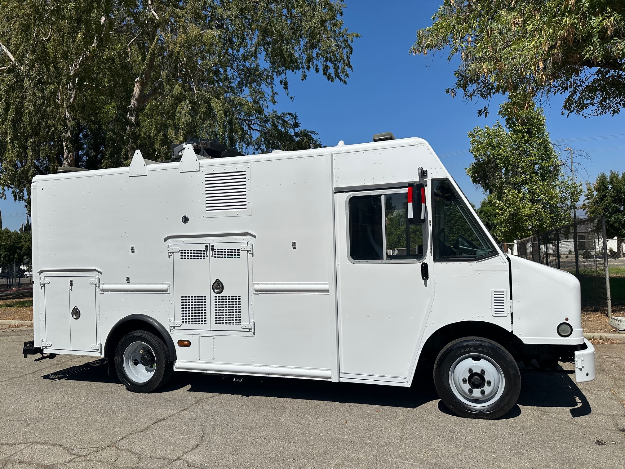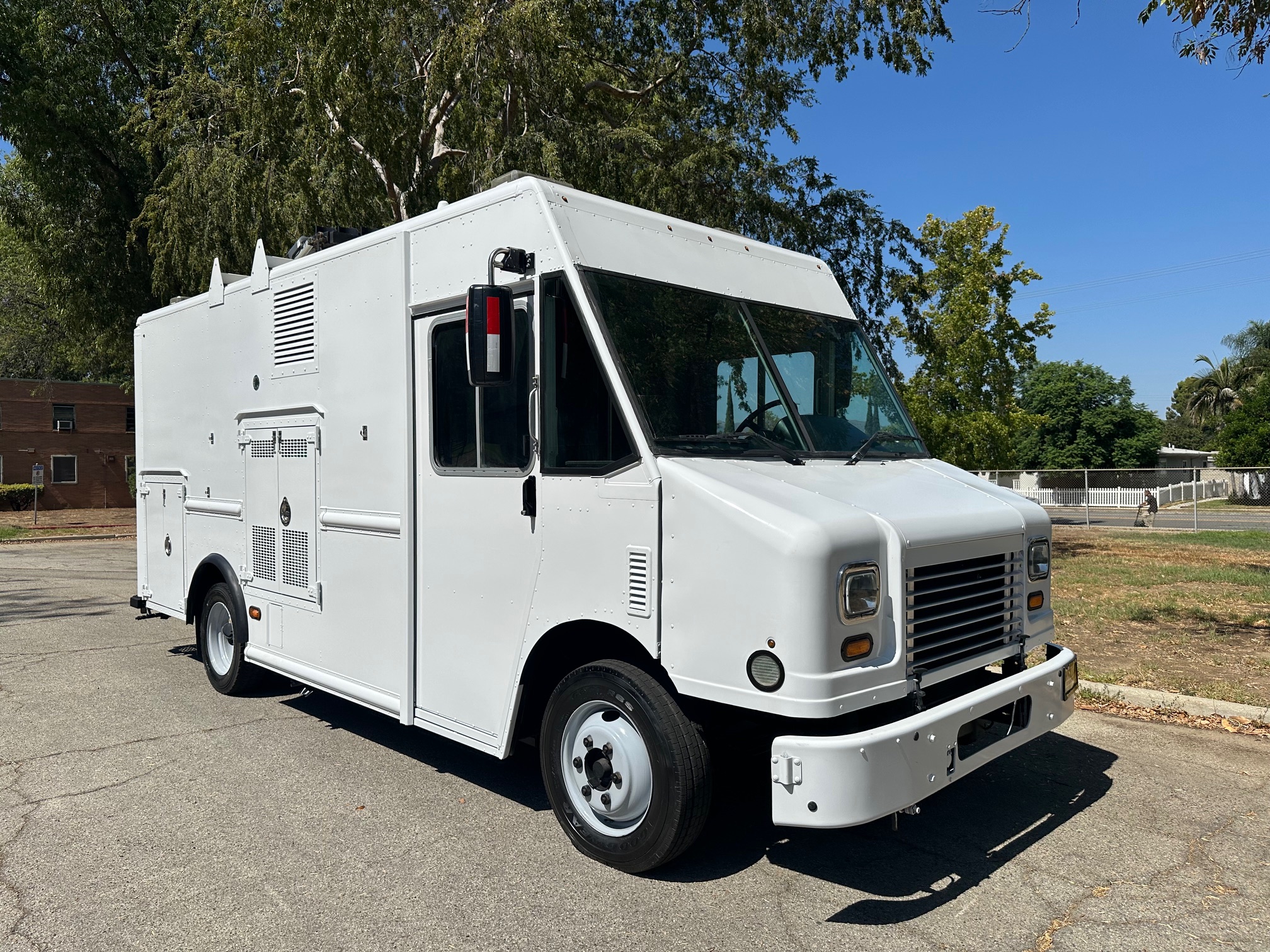 2016 Freightliner MT45 Utilimaster Step Van, 6.7L Cummins diesel, Allison auto trans, A/C, low 22k miles, exhaust brake, arrow board, strobe lights, trailer brakes, backup camera, traffic director, seats 3, BOSS B-CAN rotary hydraulic air compressor, model#8060, 160 CFM dual pressure system, Cummins Onan Commercial QD Generator, Model#6HDAV-41934R, 50 amps, Utilimaster aluminum body, 14' load length, aluminum shelving and cabinets, tow pkg, 80% tire tread, just serviced, Ex-Gov., fleet maintained since new. Nationwide shipping and financing are available. Checkout all or inventory at TruckDepotLA.com.