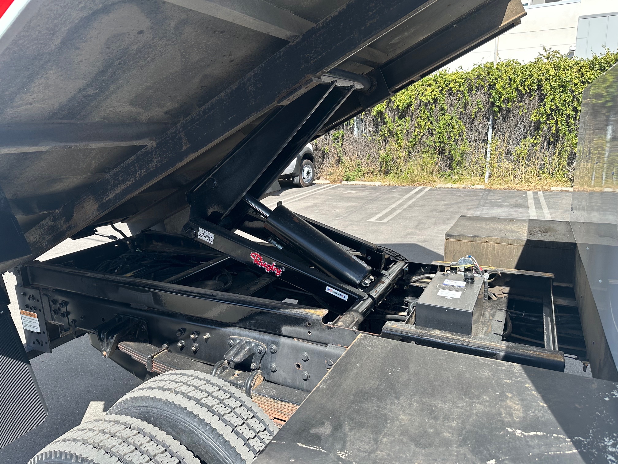 Built on a 19,500 lb. GVW chassis, this Kodiak is designed for serious work. It features a durable 11-foot chip dump body with a Rugby SR-4016 hoist system, delivering reliable and efficient dumping capability. A convenient backpack tool bin provides organized storage for tools and equipment, keeping everything easily accessible on the job.