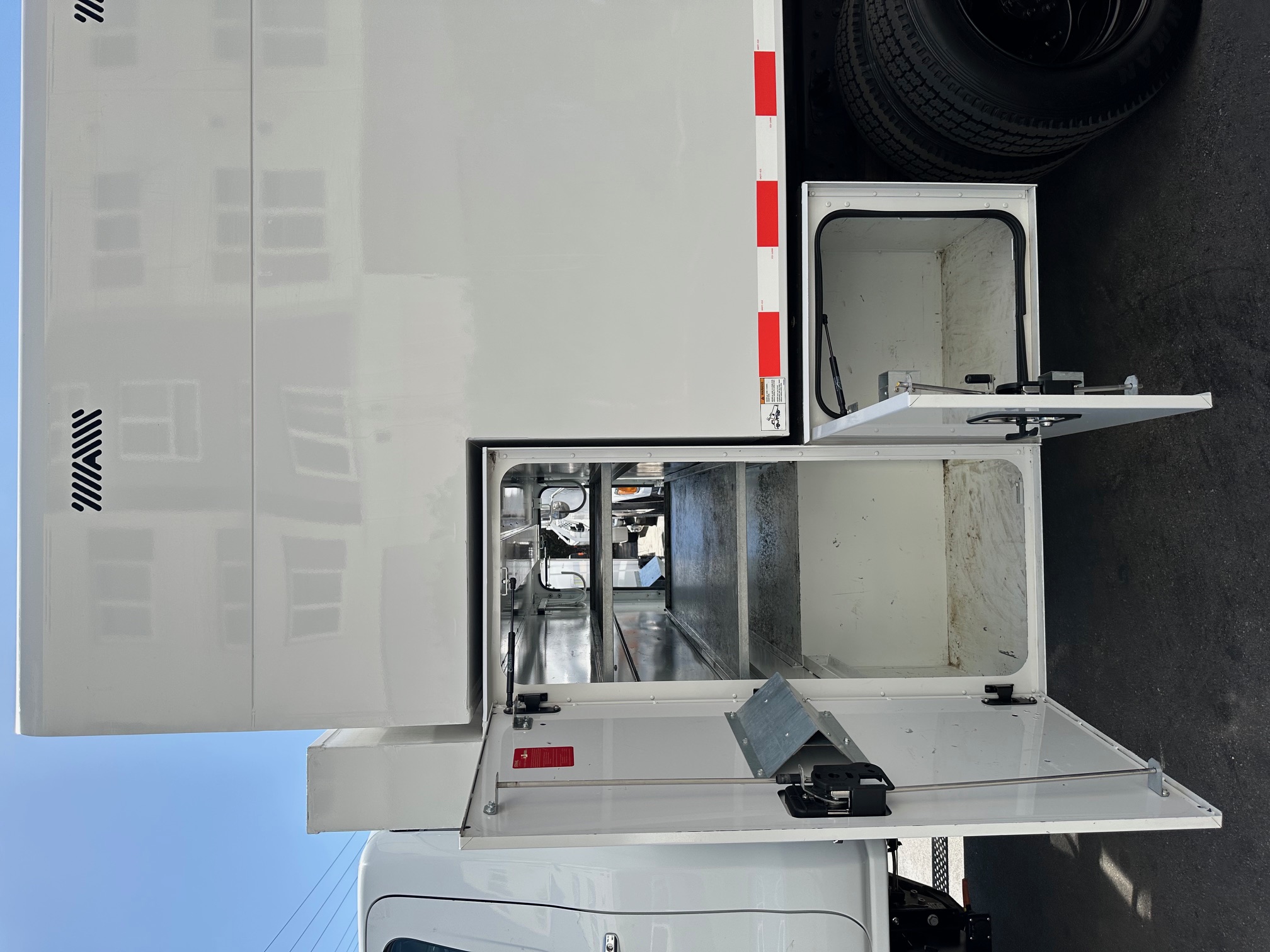 This truck is equipped with hydraulic brakes, sits on brand-new tires, and has just been fully serviced to ensure it is ready for immediate use. The body and chassis are rust-free, and the truck has been fleet maintained and serviced since new, reflecting consistent professional upkeep.