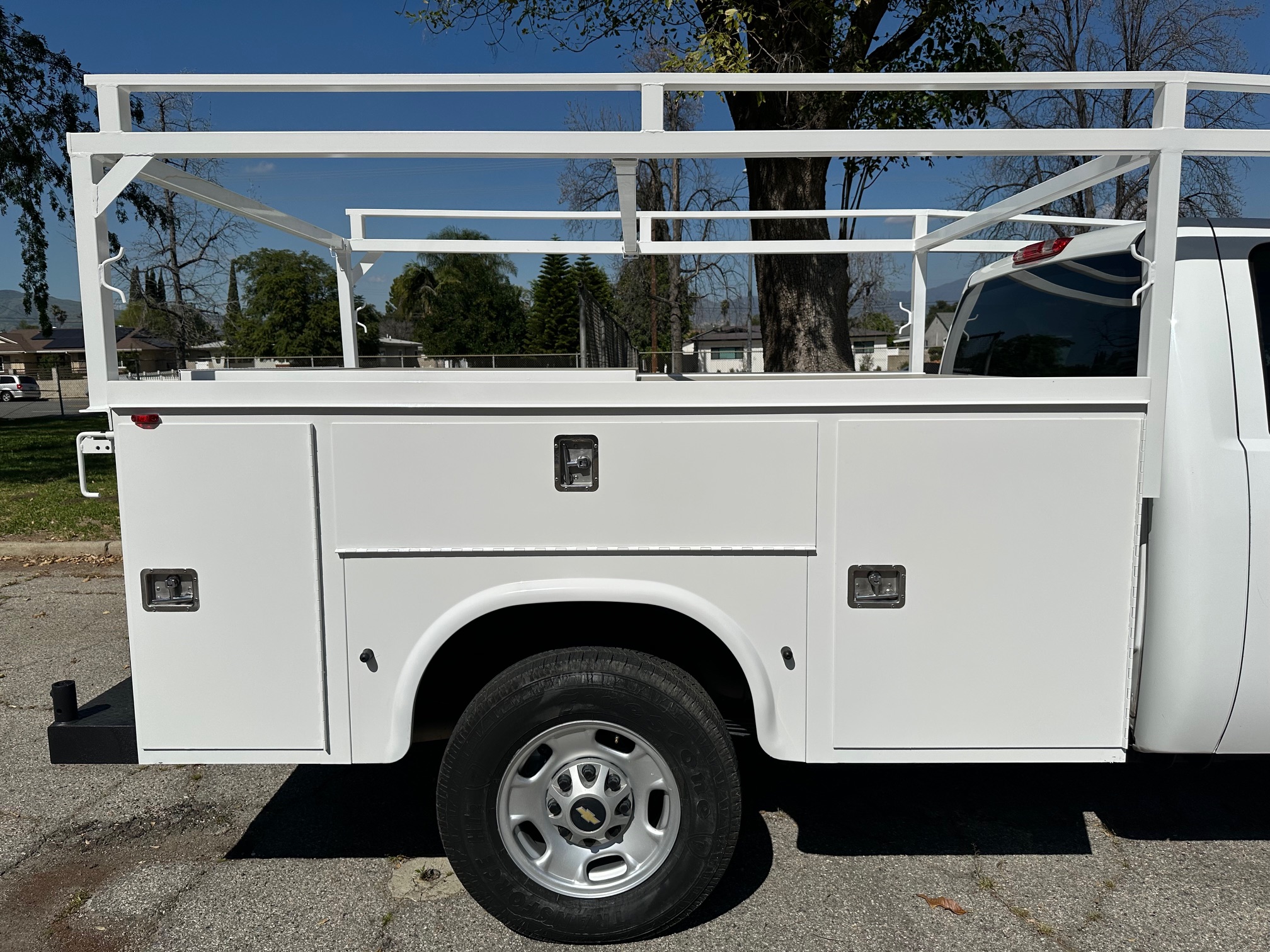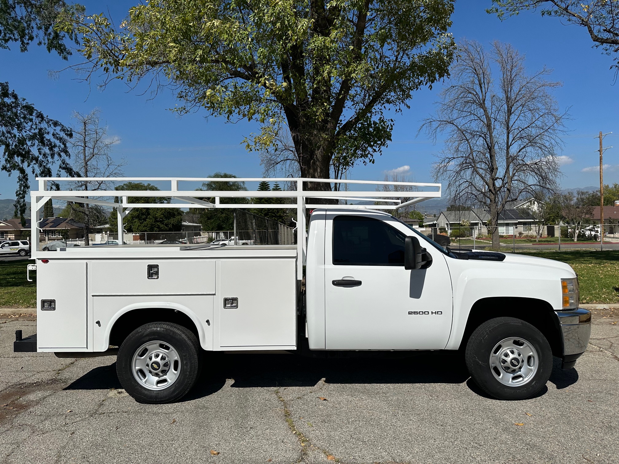 2013 Chevrolet Silverado 2500HD Service Body / Utility Truck powered by a dependable 6.0L V8 engine paired with a smooth automatic transmission. This heavy-duty work truck is equipped with cold A/C, tilt steering, cruise control, and tinted windows for added comfort and convenience on long job sites or highway drives.