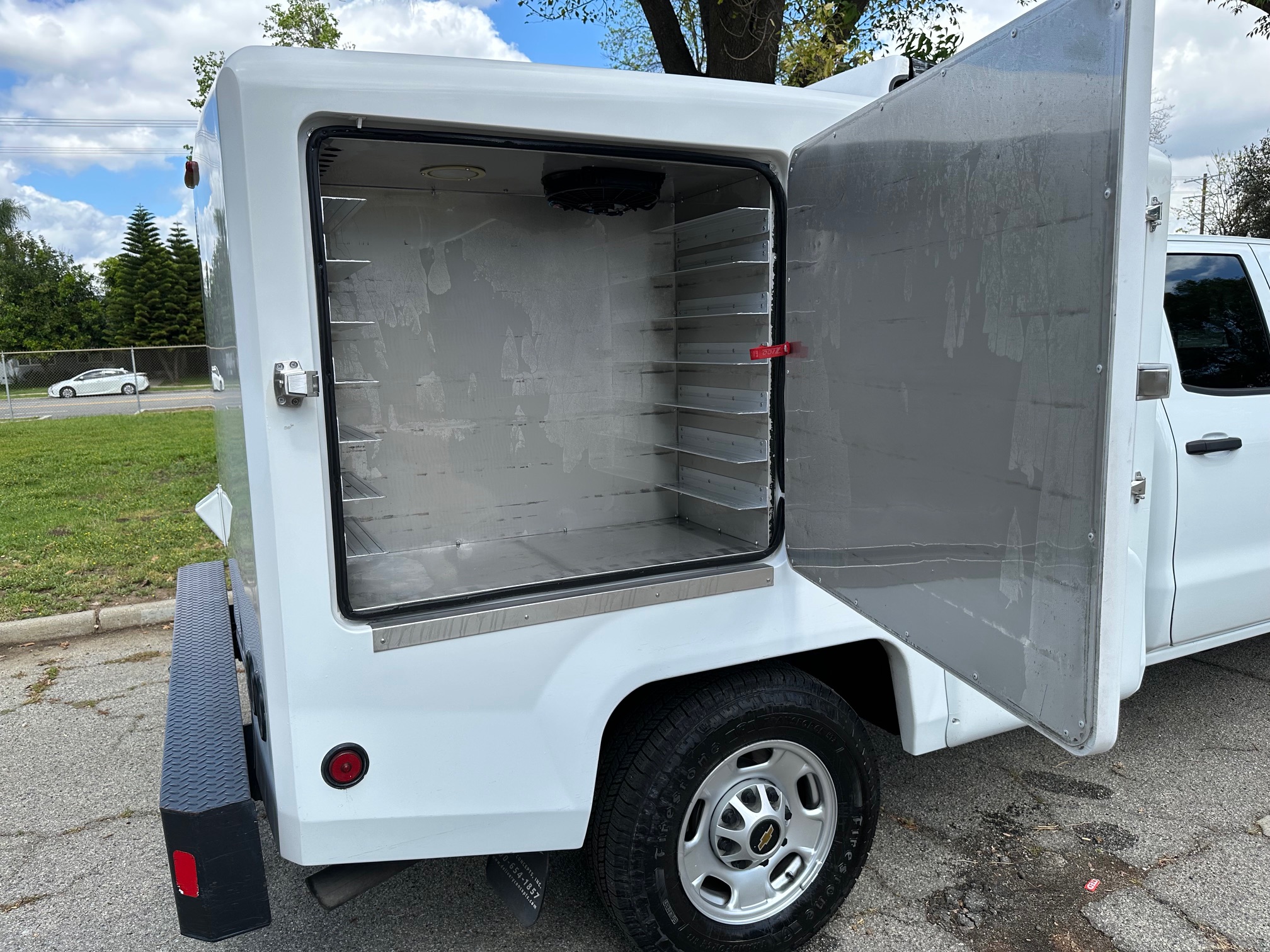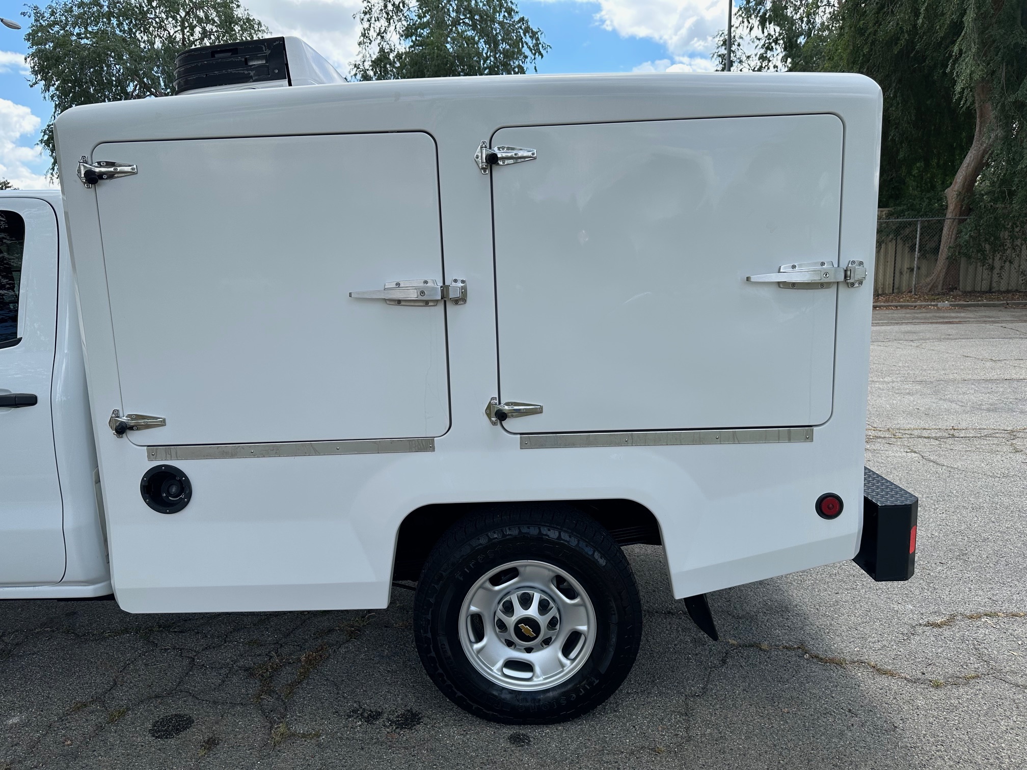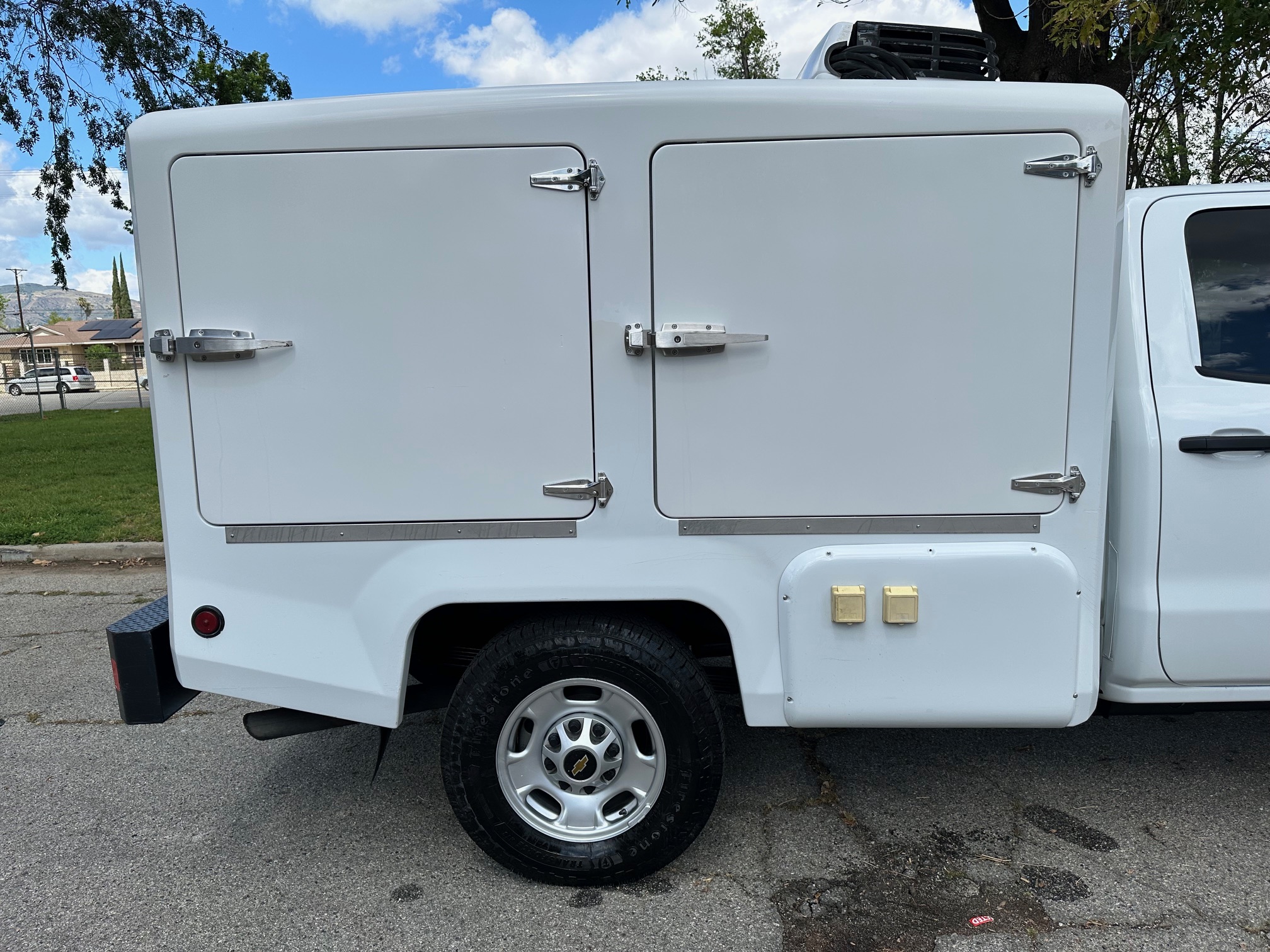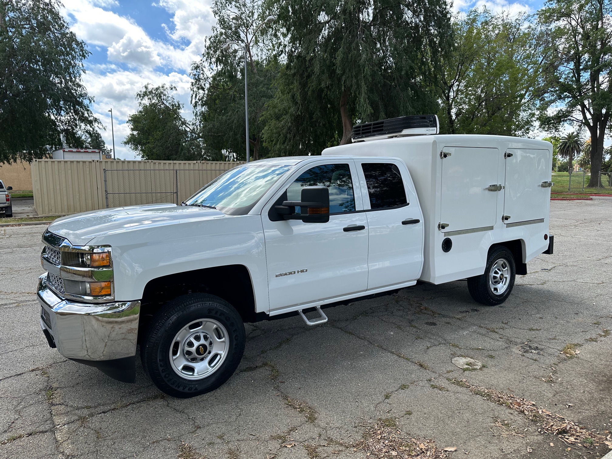 2019 Chevy Silverado 2500 H.D. Extra Cab Hot/ Cold Delivery Truck, Vortec 6.0L V-8, 6-speed automatic trans, A/C, tilt, cruise, power windows and locks, power mirrors, 90k miles, trailer brakes, backup camera, bluetooth radio, tint, alarm, Delivery Concepts 8' fiberglass body, equipped with the 8 Series body it features lightweight, insulated fiberglass body with frozen, refrigerated, heated and ambient compartment options, available in any combination. The added size means you can accommodate larger functions, leading to larger profits. The 8 Series maintains proper food temperature, delivers kitchen-fresh quality, allows for large orders, and extends your delivery area.SPECS Thermostatically-controlled Interiors built to meet your specifications Inexpensive operation cost, low maintenance, and no additional fuel sources needed Side compartment, pass-through doors enhance accessibility to your products Interior and exterior lighting Heating is provided by a ceiling-mounted blower system, coupled with a series of integrated coils, and stainless steel braided hoses, that originate from the vehicle’s existing cooling system Cooling is provided by an over-the-road refrigeration system with an engine-mounted compressor, a skirt-mounted condenser, and dual 10” fan evaporators. Standby mode keeps food safely stored in the truck. The truck has just been serviced, 90%+ tire tread remaining, clean original paint, runs and drives great. Checkout all our inventory at TruckDepotLA.com