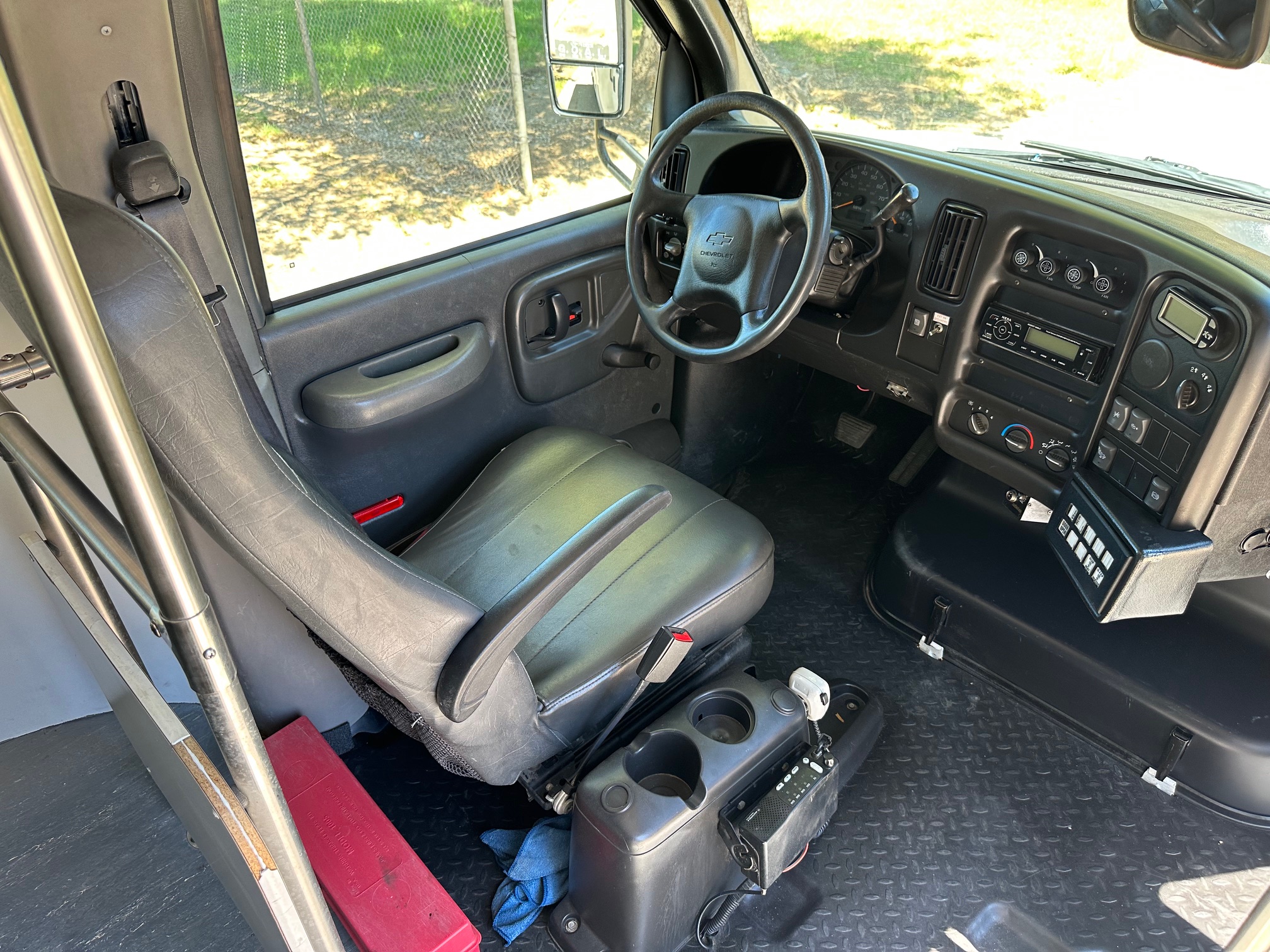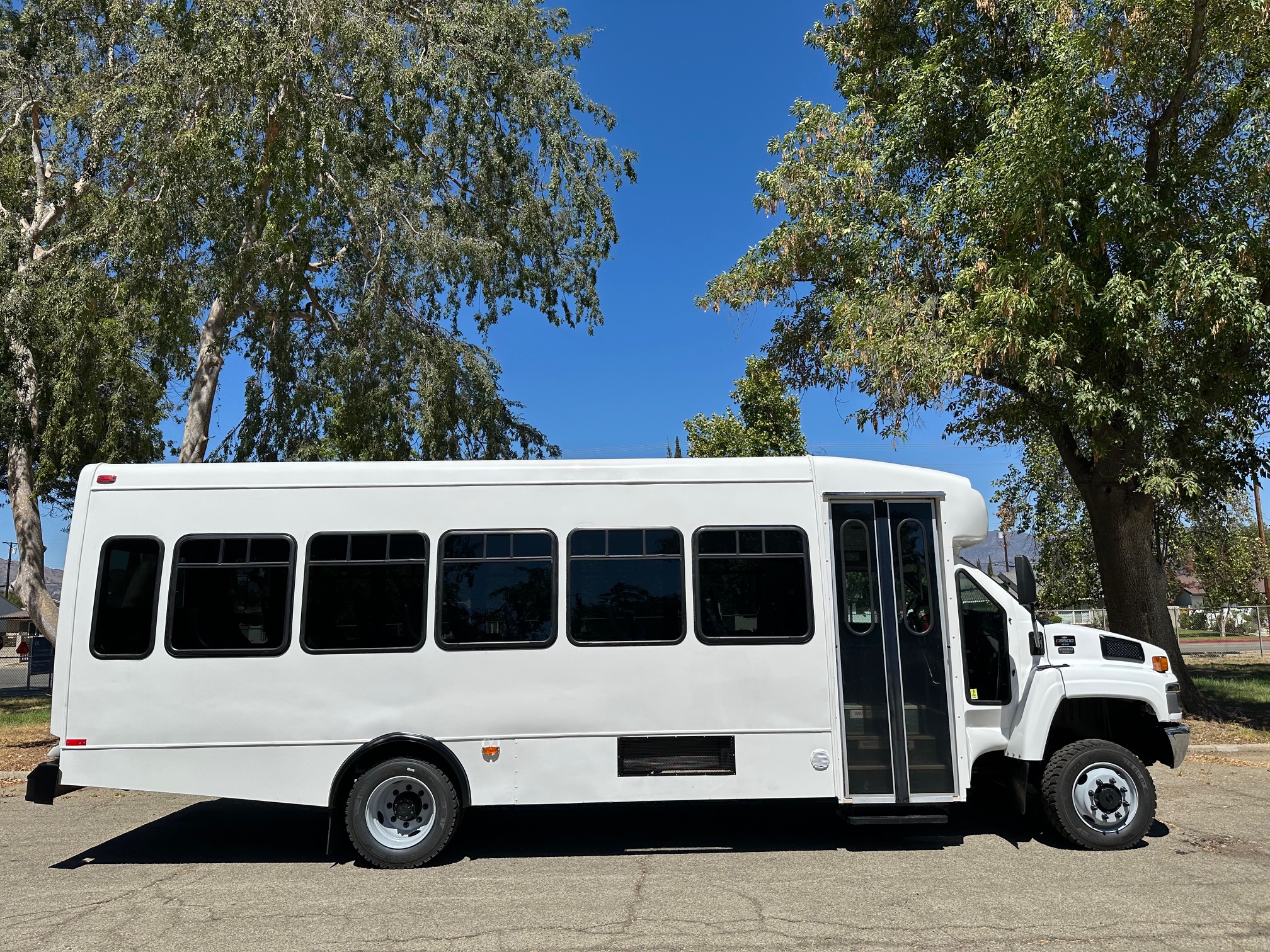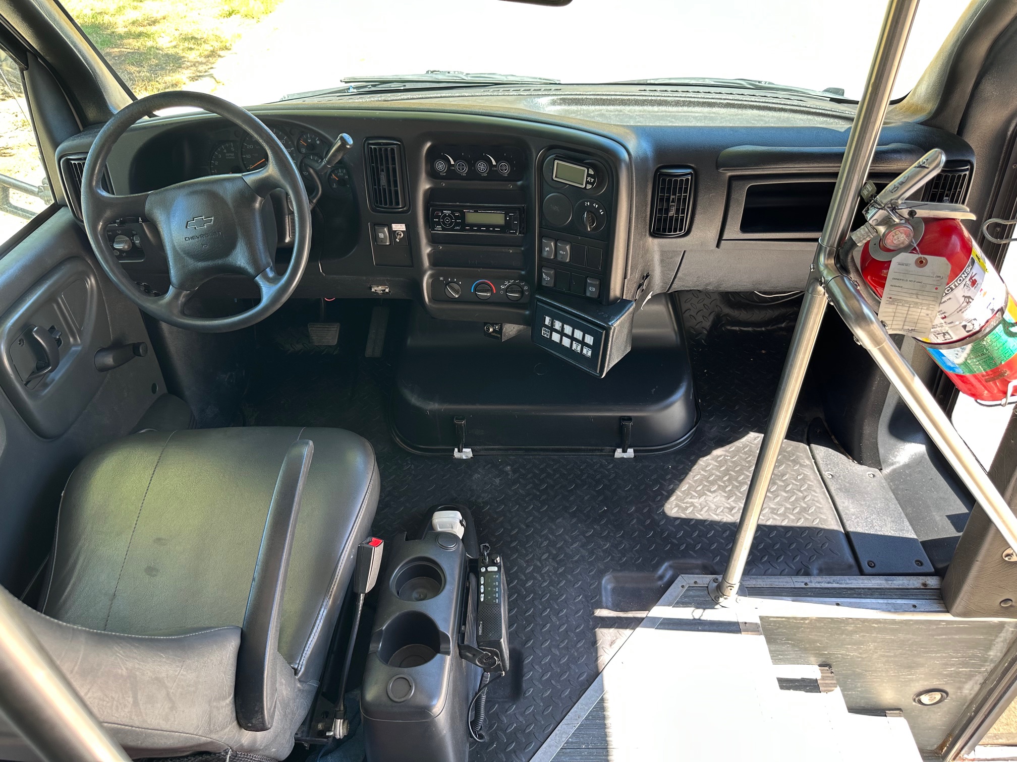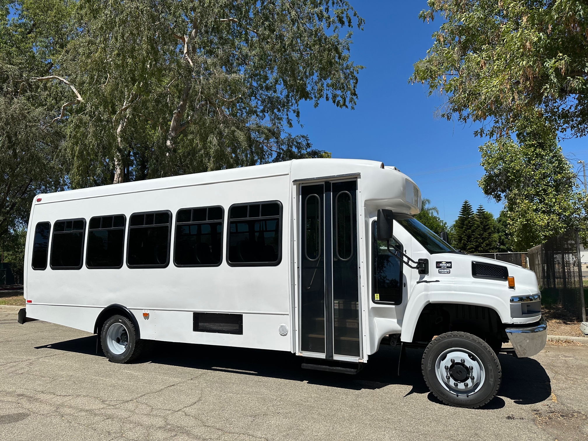 2008 Chevy Kodiak C-5500 4X4 Diesel Bus, 6.6L Duramax diesel, Allison auto trans, front & rear A/C & heat, 158k miles, tilt, cruise, power mirrors, exhaust brake, PA system, 19,500 g.v.w., Supreme Bodies conversion, seats 29 passengers, overhead storage, new tires, just serviced, runs and drives great. Nationwide shipping and financing are available. Checkout all our inventory at TruckDepotLA.com.
